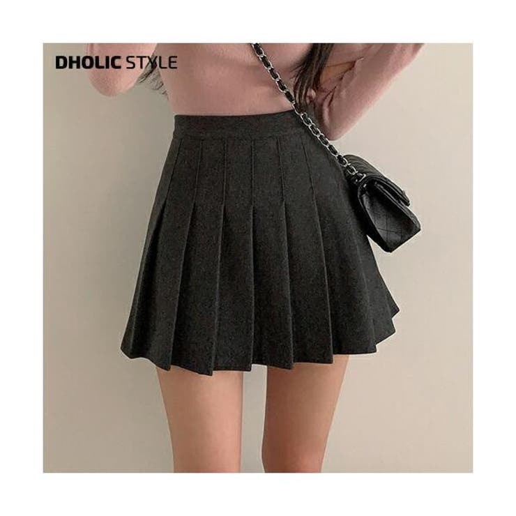 生地は見ためウール調で、裏地は柔らかくてさらりとした素材で着心地も快適のミニプリーツスカート