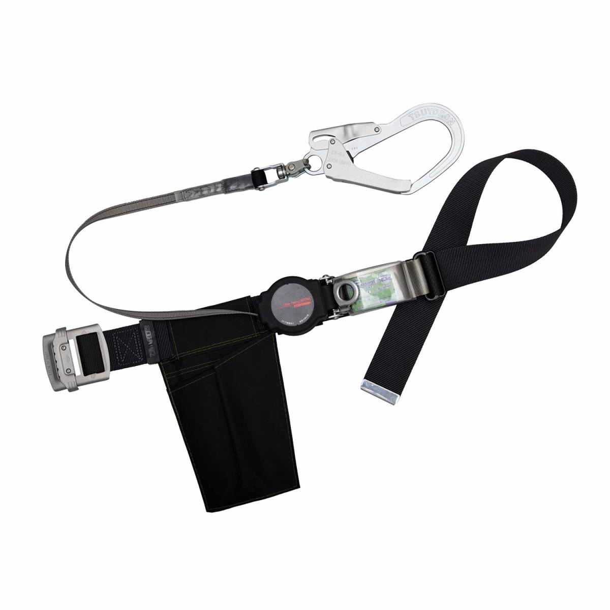 ●ワンハンド機構により、織ロープの操出から収納まで片手で操作できる業界初の巻取り式安全帯です。