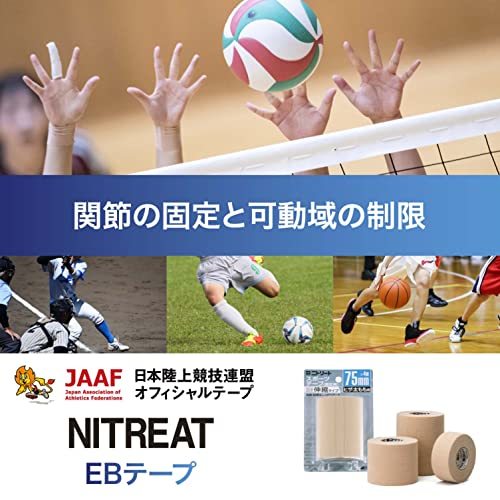 幅75mm×長さ4m [1巻入]・ベージュ 75mm×4m EB-75BP・・Style:幅75mm×長さ4m [1巻入]・幅:75mm・長さ:4m・入数:1巻入・部位:足・腰用・基材:綿JAAF日本陸上競技連盟オフィシャルテープ ハードタイプの伸縮テープで、特徴的な編み方で強いサポート力を実現しました。 ※肌の弱い人、荒れ性の人は使用しないでください。本品の使用により、皮膚に異常があらわれた場合は使用を中止し、医師にご相談ください。また、傷などのある場所には使用しないでください。 75mm×4m 1巻入り