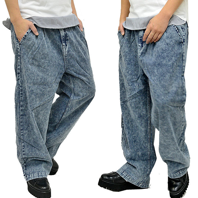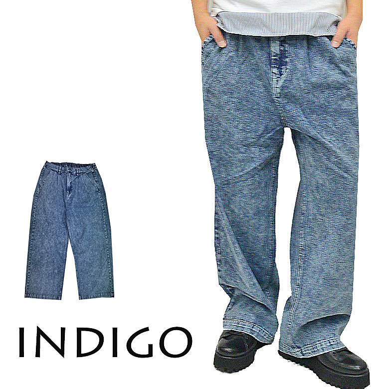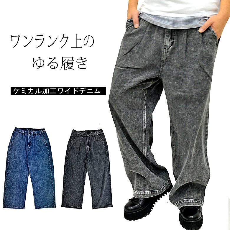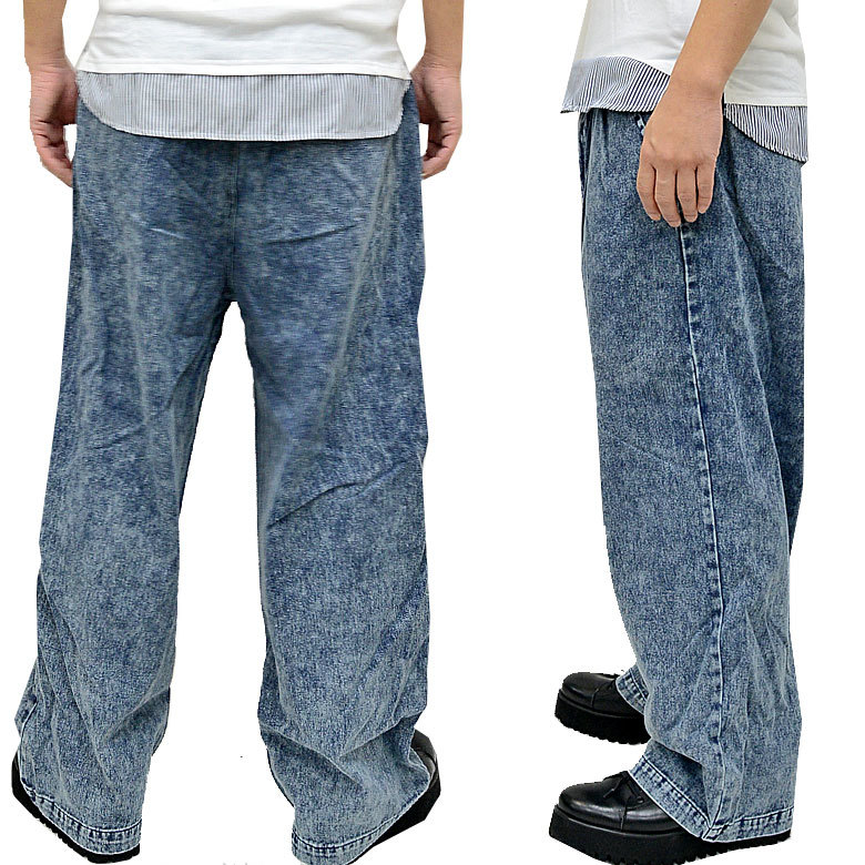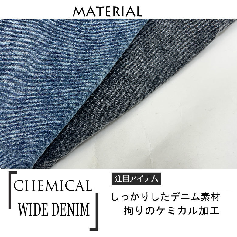 ワイド ジーンズ デニム ケミカルワイドデニムパンツ 33-h353 新品 インディゴM