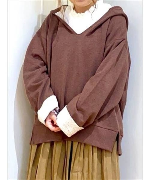 5回以下着用☆Samansa Mos2☆セーラーカラー見え裏毛パーカー☆定価5390円☆サマンサモスモス☆フリー☆ブラウン系