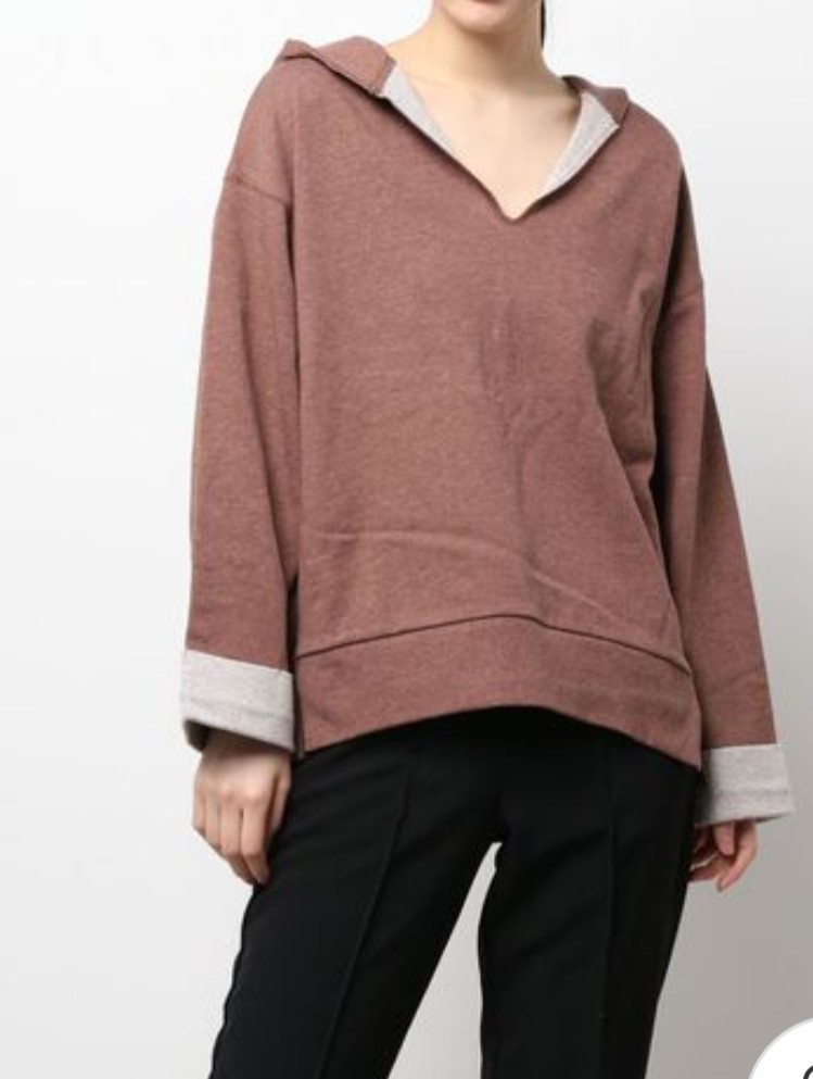 顔周りをすっきり見せてくれるセーラーカラー見え裏毛パーカー。