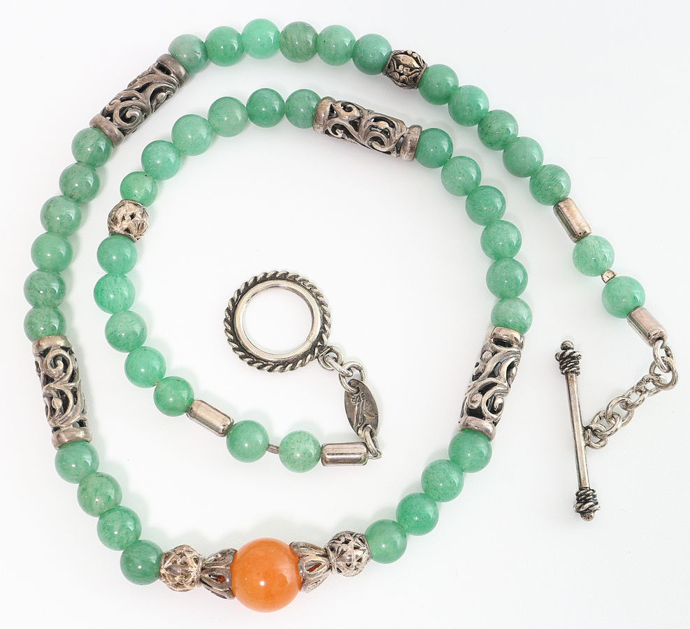 【寸法】 全長 約46cm 橙色翡翠の直径10mm 緑色翡翠の直径6mm 【状態】 多少の銀変色があります 【詳細】 翡翠 銀製(SILVER925) ブランドロゴあり 【配送】 おてがる配送ゆうパケット(補償なし) / おてがる配送ゆうパック(補償あり) 【免責】 ご連絡や発送にお日にちを頂戴する場合があることをご了承ください |
