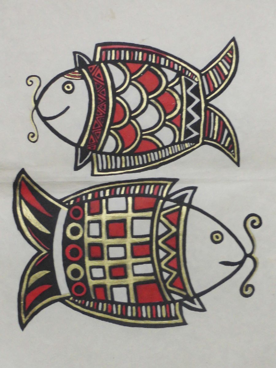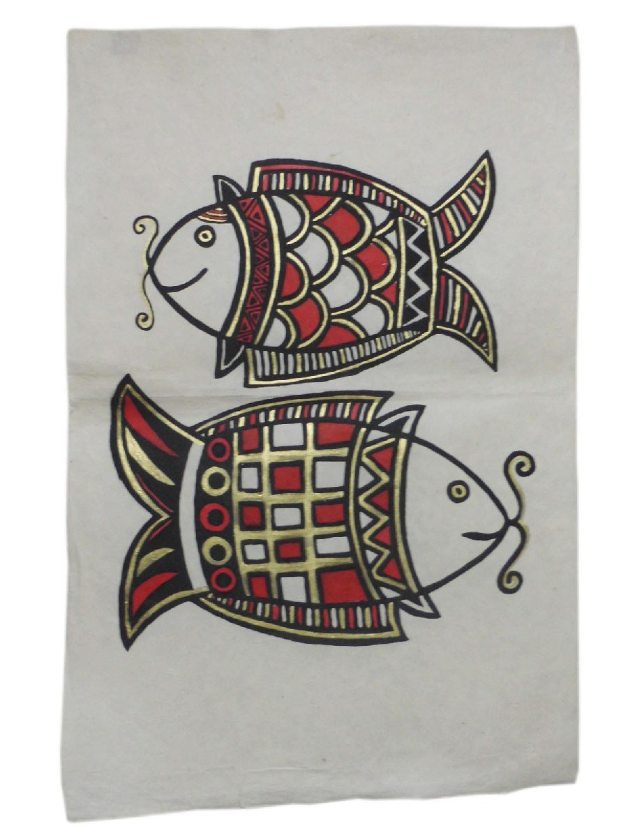 ■☆アジアン雑貨 ネパール・手すきポスター 吉祥のシンボルの魚(PO-12)