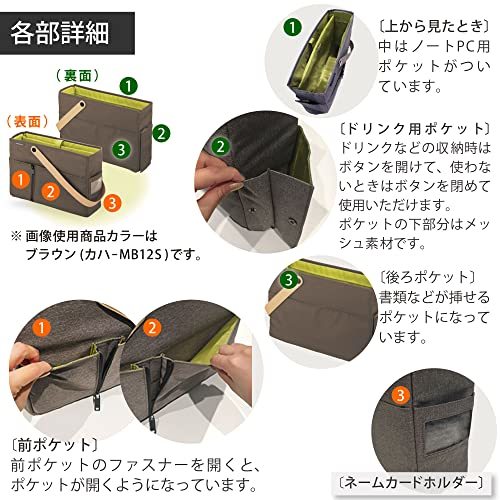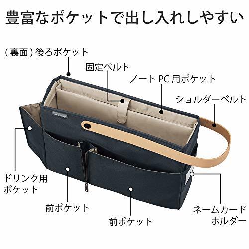 モバコアップ ネイビー・ネイビー 380×105×260mm カハ-MB12B・・Style:モバコアップ ネイビー・仕事に必要な道具をまとめて収納、移動できる社内持ち運び用バッグのショルダータイプ。・【外寸法(W×D×H)】 380×105×260mm ※ショルダーベルトを除く・【内寸法(W×D×H)】 360×95×245mm・【PCポケット収容可能寸法(W×D×H)】 355×28×240mm・【質量】 約650g 【耐荷重】 約58.8N(約6kgf)■■機能性とデザイン性を兼ね備えた、フリーアドレスに最適な社内持ち運び用バッグ(モバコ アップ)■■ ●商品特徴 【持ち運びしやすい】 ・両手をふさがず、楽に持ち運べるショルダータイプです。 ・書類、ノートPC、マウス、電源ケーブル等をひとつにまとめられ、社内をスムーズに移動できます。 【棚やキャビネットに収めやすい】 ・ワンショルダーベルトでパーソナルロッカーにすっきり収まる寸法設計。 ・ショルダーベルトを手前に出しておくと、ロッカーからの取り出しに便利です。 ※お使いの棚に収まるか、事前に寸法をご確認ください。 ※外ポケットに物が収容されたままの状態ですと、棚に収まらない場合があります。 【豊富なポケットで出し入れしやすい】 ・マウス、電源ケーブルが収容できる前ポケット、書類を挿せる後ろポケット、ドリンク用ポケットなどの外ポケットでオフィス内で持ち運ぶものが素早く出し入れでき便利です。 【オフィスになじむデザインとカラーリング】 ・明るい内装色で中身が見やすくなっています。 ●商品仕様 ・外寸法(W×D×H)/380×105×260mm ※ショルダーベルトを除く ・内寸法(W×D×H)/360×95×245mm ・PCポケット収容可能寸法(W×D×H)/355×28×240mm ・質量/約650g ・耐荷重/約58.8N(約6kgf) ・材質/表材・内装:ポリエステル、芯材:PE・PP、ショルダーベルト:PU・PP ・製品色/ネイビー(内装色は明るいブラウンです) ※本製品は衝撃から収容物を保護するものではありません。また、収容物をする設計にはなっておりません。使用時における電子機器などの収容物の破損・故障・紛失については責任を負いかねますのでご了承ください。 ※持ち運ぶ際は肩にかけてお運びください。手に持った状態で運びますと本体を階段などの段差にぶつけるおそれがあります。
