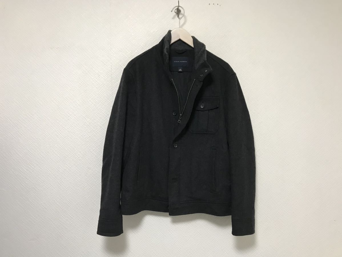 商品名:本物バナナリパブリックBANANAREPUBLICウールジップジャケットメンズサーフワークミリタリーアメカジビジネススーツM黒グレー