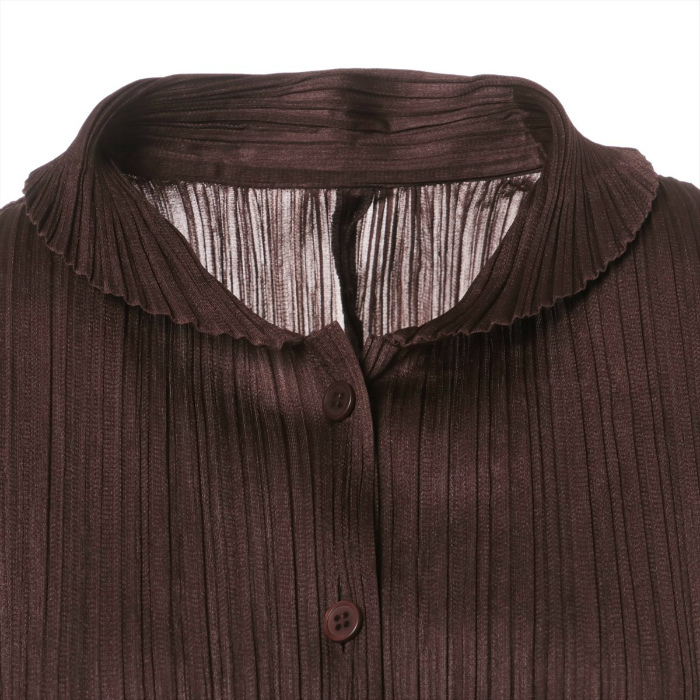 | プリーツプリーツ イッセイミヤケ(PLEATS PLEASE ISSEY MIYAKE) ポリエステル プリーツ シャツ カーディガン ブラウン 長袖 ウェア(新品同様)中古 |