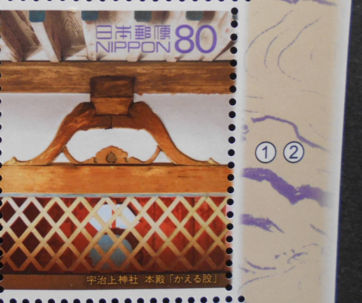 世界遺産シリーズ第5集古都京都の文化財 宇治上神社本殿「かえる股」 未使用80円切手