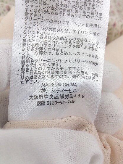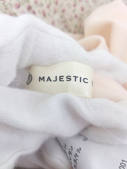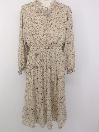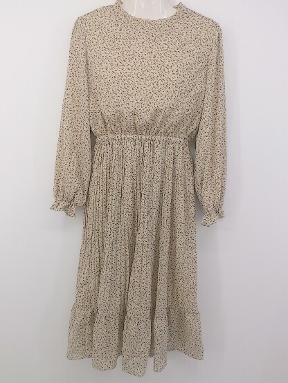 ◇ MAJESTIC LEGON 小花柄 フリルカラー プリーツ 長袖 膝下丈 ワンピース サイズM ベージュ系 マルチ レディース P