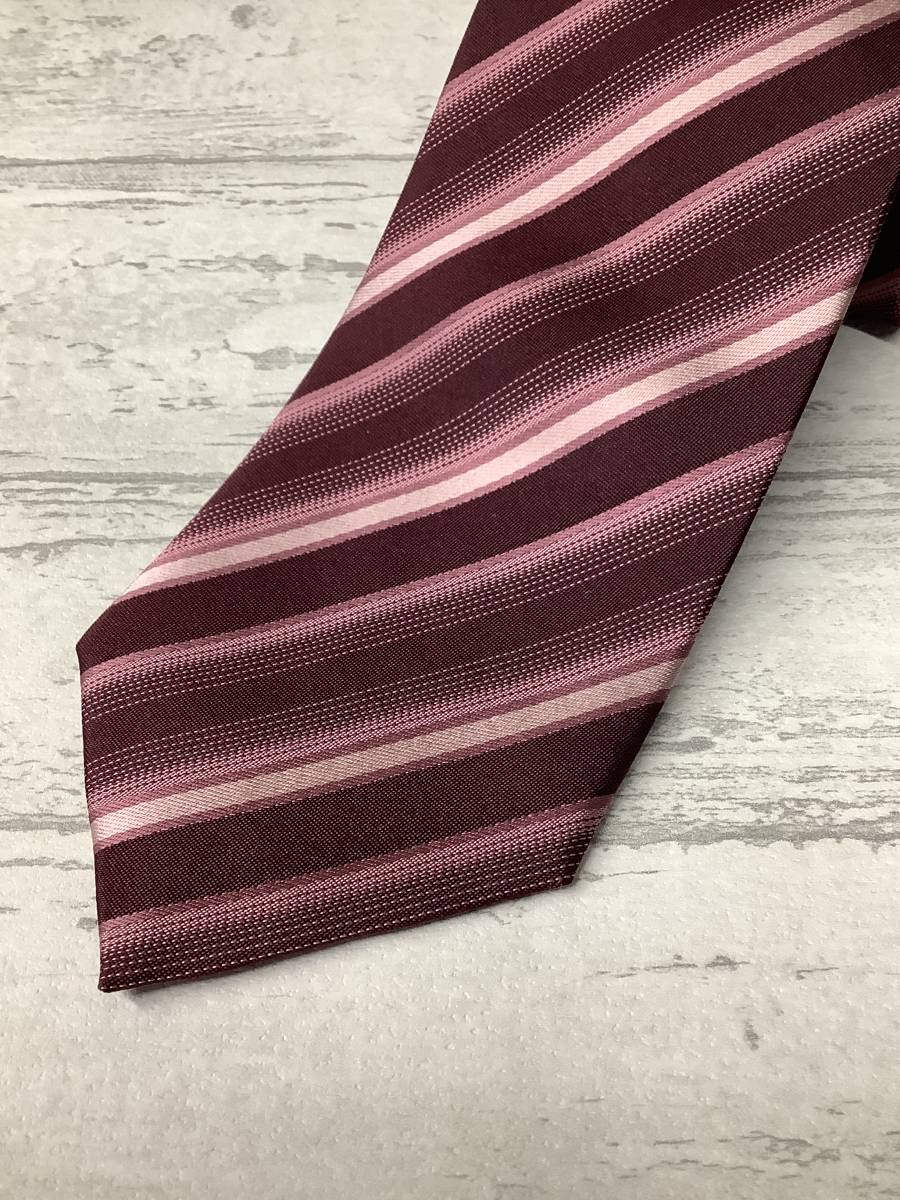 新品未使用 締めやすい日本製ネクタイ ワイン系ストライプ シルク100%お買い得サービス