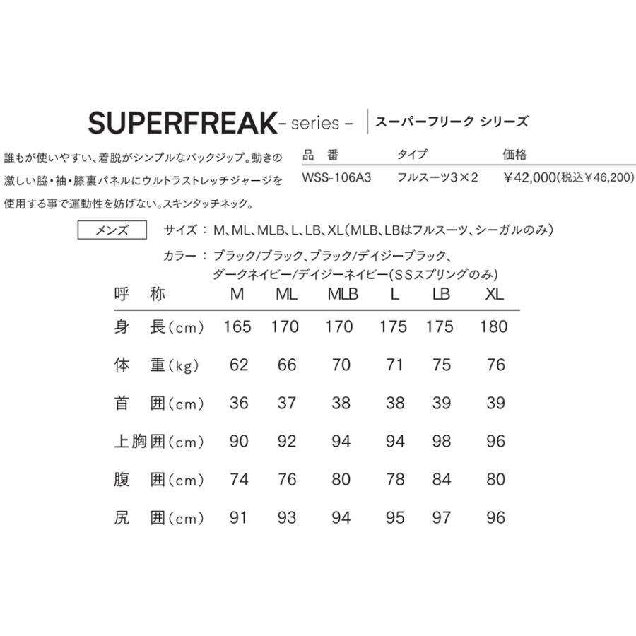 オニールメンズスーパーフリークフルスーツウェットスーツ長袖長丈バックジップ3*2mm ジャージ/ブラックL WSS-106A3