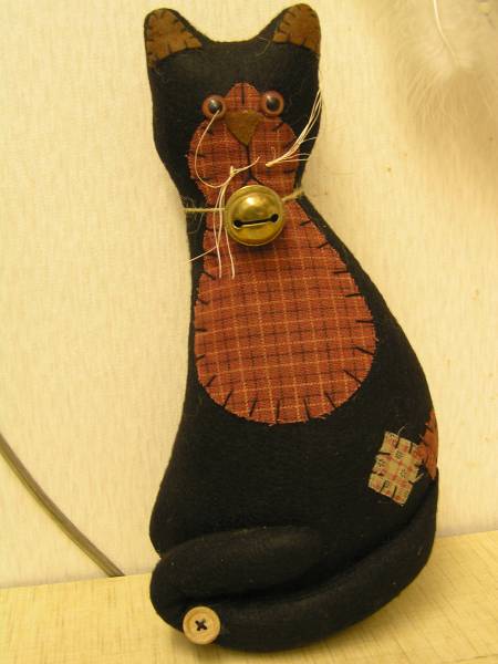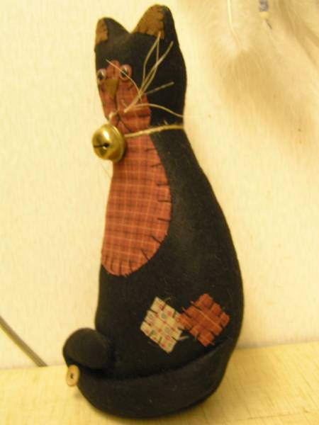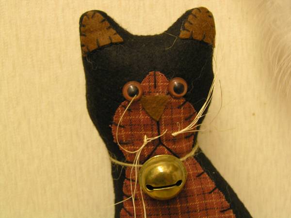 フェルト素材の黒ネコのぬいぐるみタイプの置物。