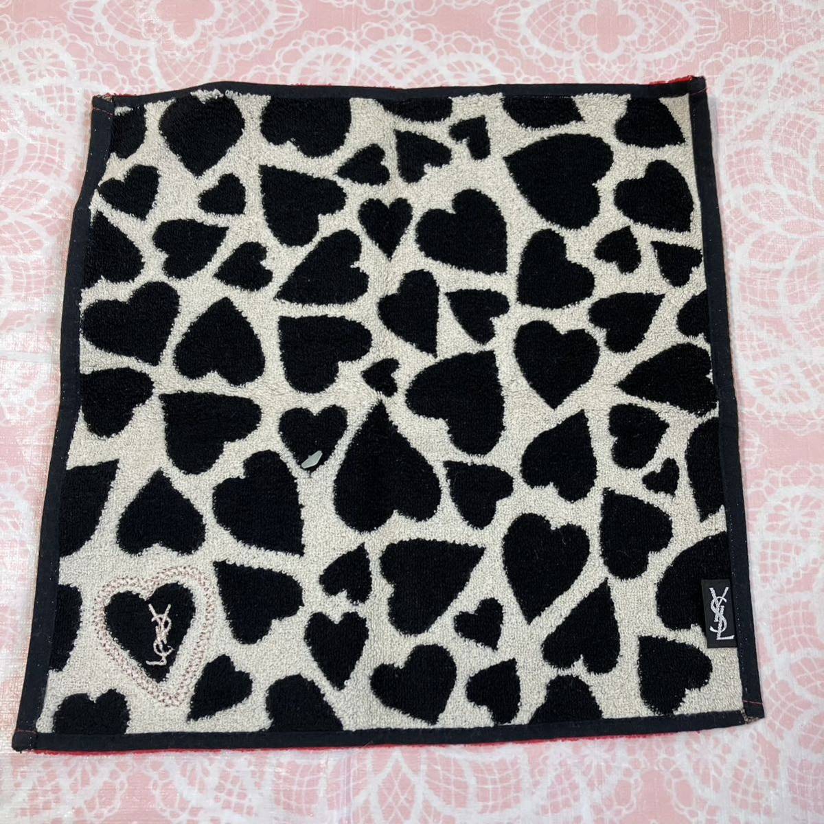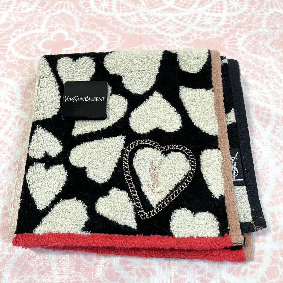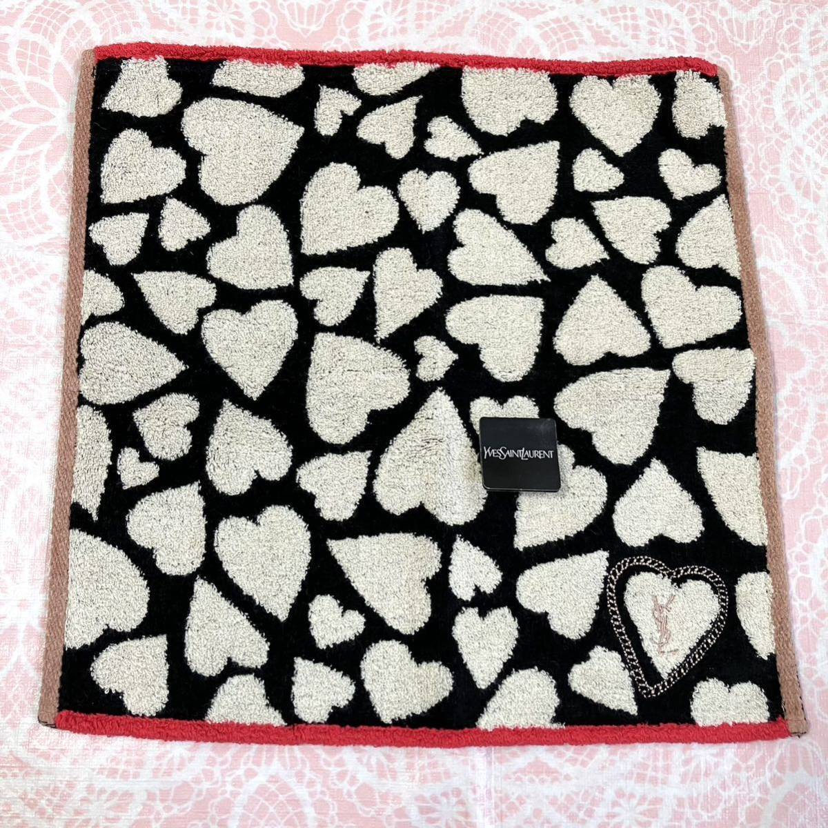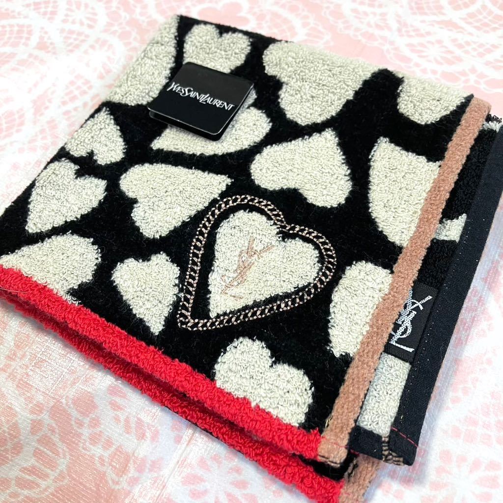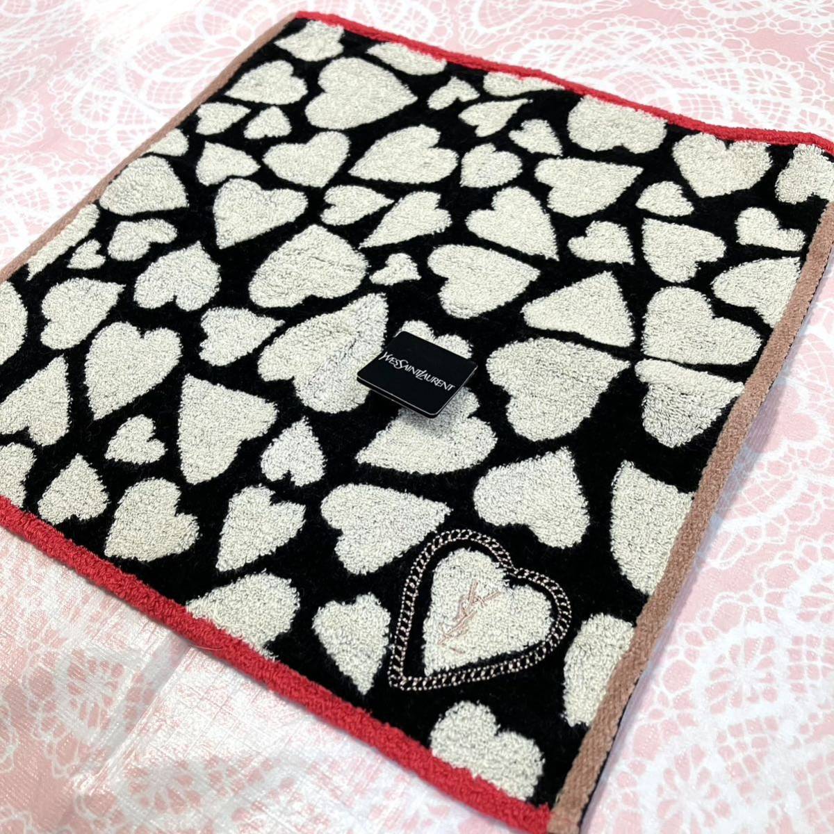【人気柄】新品/イヴサンローラン/タオルハンカチ/正規品/未使用/YVES SAINT LAURENT/YSL/ハート/タグ付き/ブラック/黒×赤/大判/日本製/