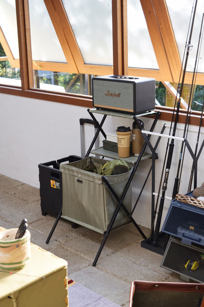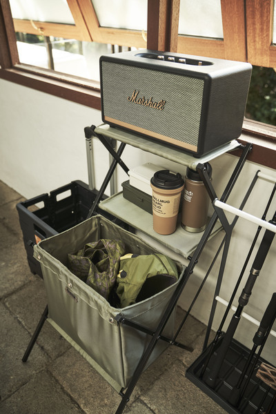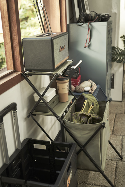 アイデア次第で大活躍。 ソファの横に置いてサイドテーブルや、ベッドの横に置いてナイトテーブルとして、またデスク横に置いて簡単なラック&収納ボックスとしても使えるので様々なシーンで使用できます。 折りたたみもでき収納も便利でインテリアはもちろん、アウトドアシーンでも活躍してくれます。 棚部分にはMDF板を使用しているので、マグカップやフォトフレーム、ボトル類等も置くことができます。