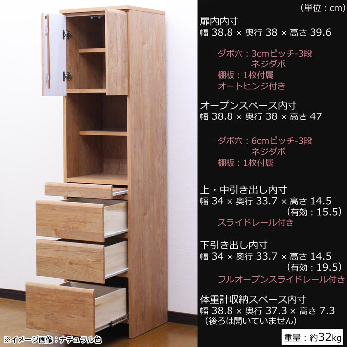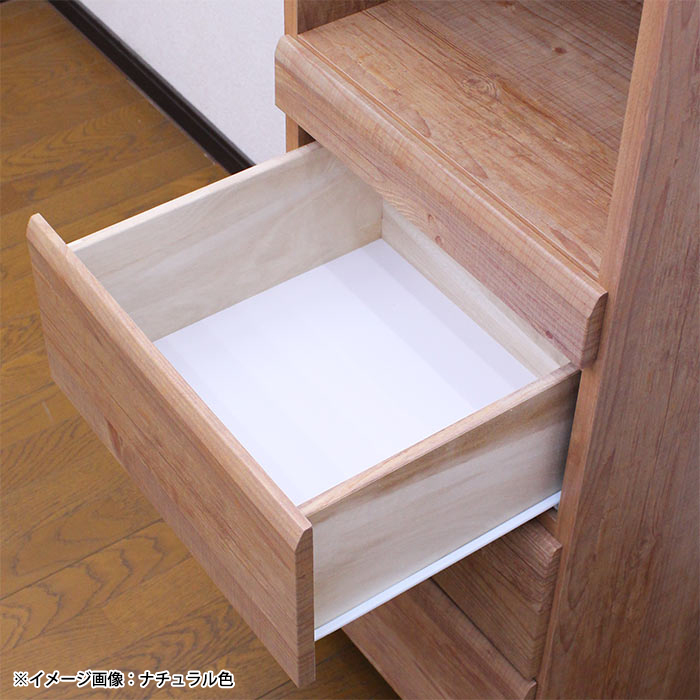 特  徴ナチュラル・ブラウン・ホワイトから選べるランドリーラック。タオルなどの収納に便利な引き出しタイプ。使用中のドライヤーなどを置けるカウンター引き出し付き。