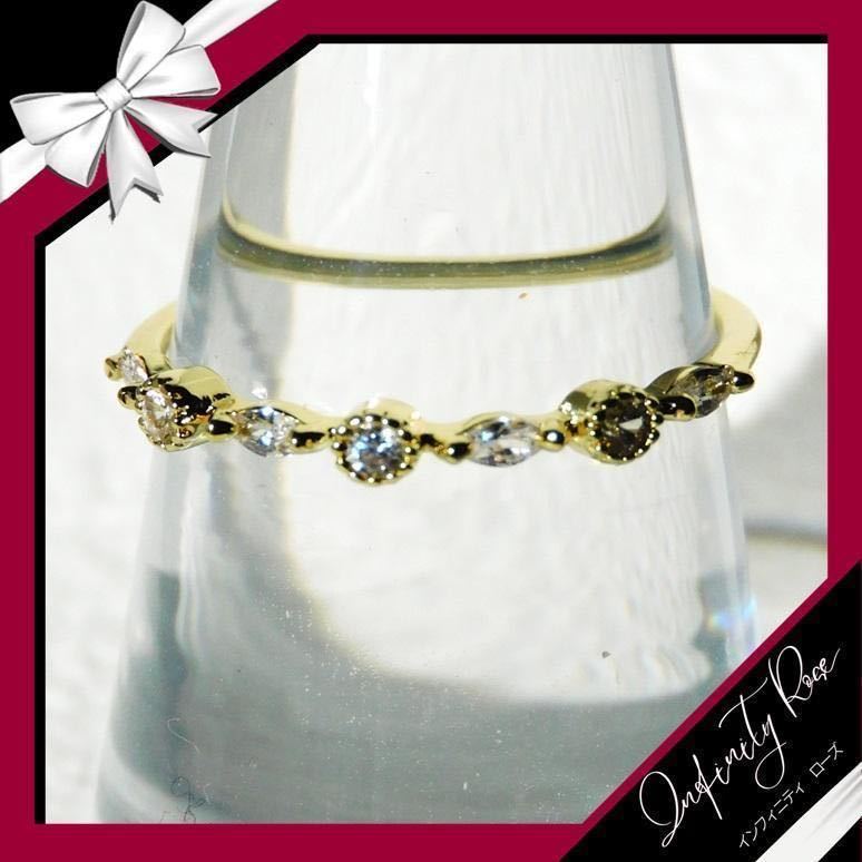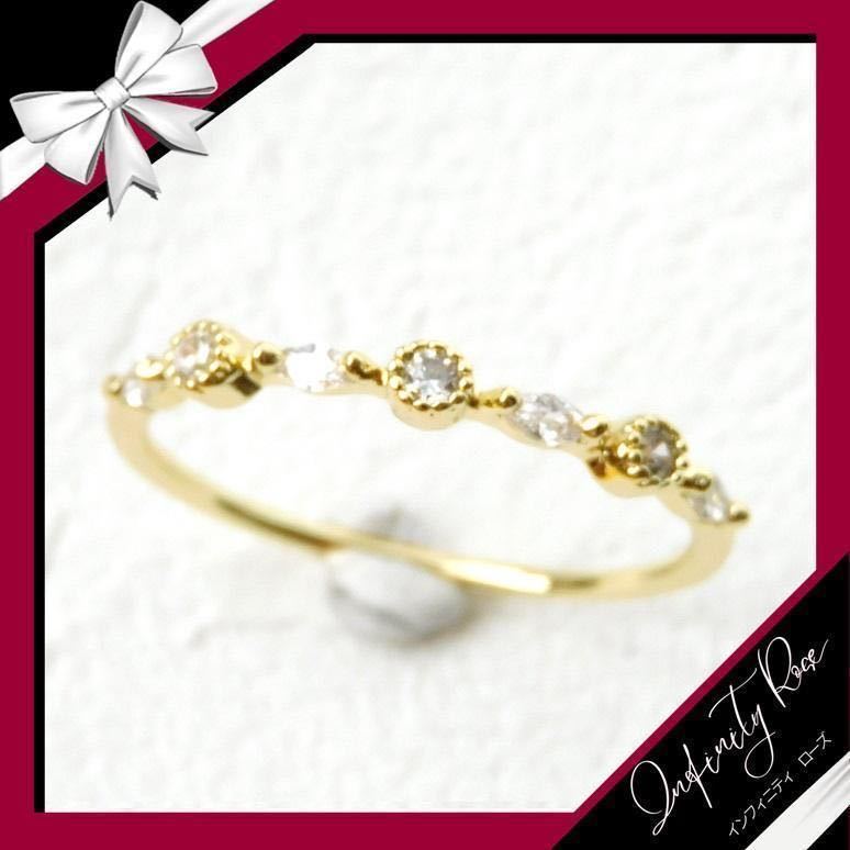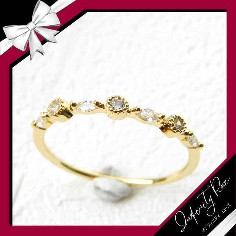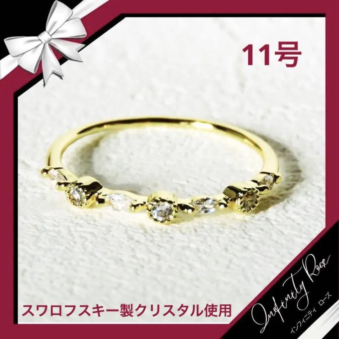 (1235)11号 ゴールド繊細デザインコスチューム極細リング クリスタル指輪 スワロフスキー製クリスタル使用