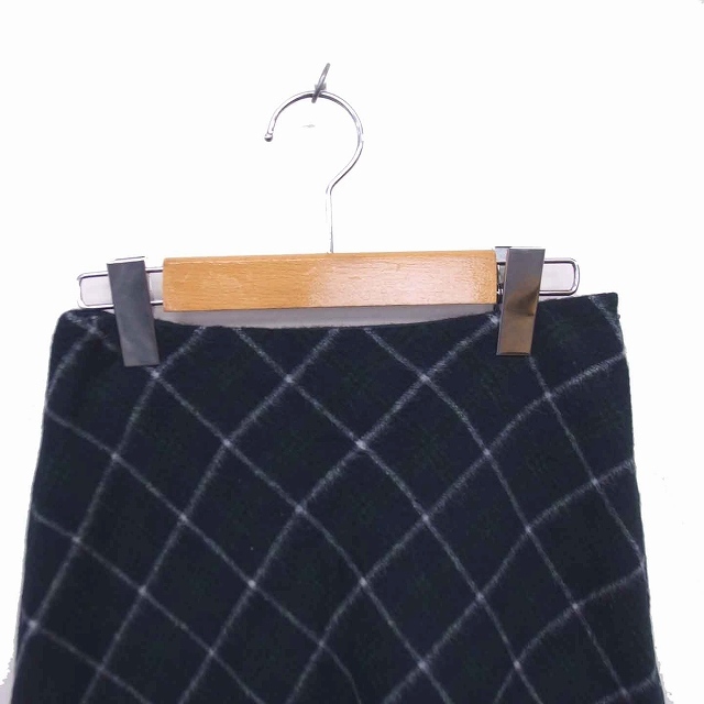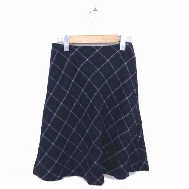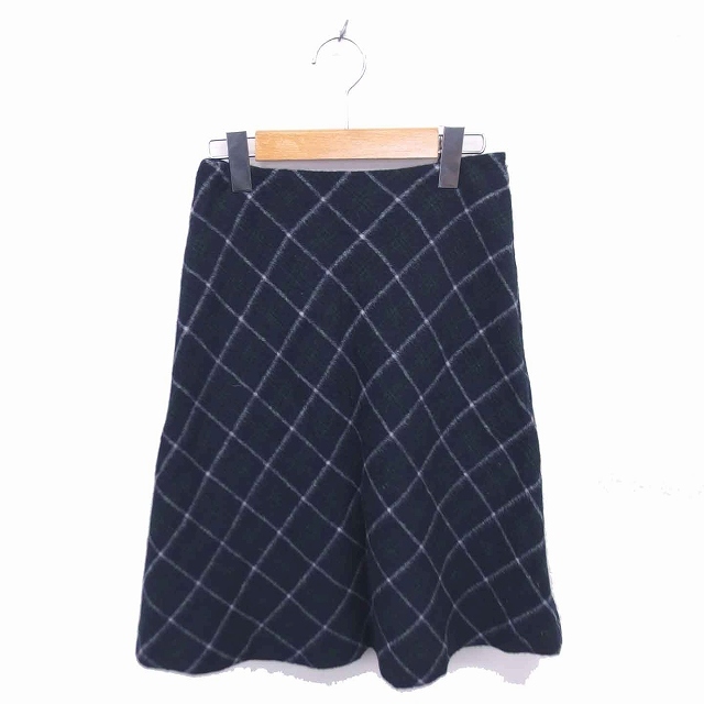 ナチュラルビューティーベーシック NATURAL BEAUTY BASIC フレア スカート ひざ丈 チェック ウール XS グリーン ネイビー