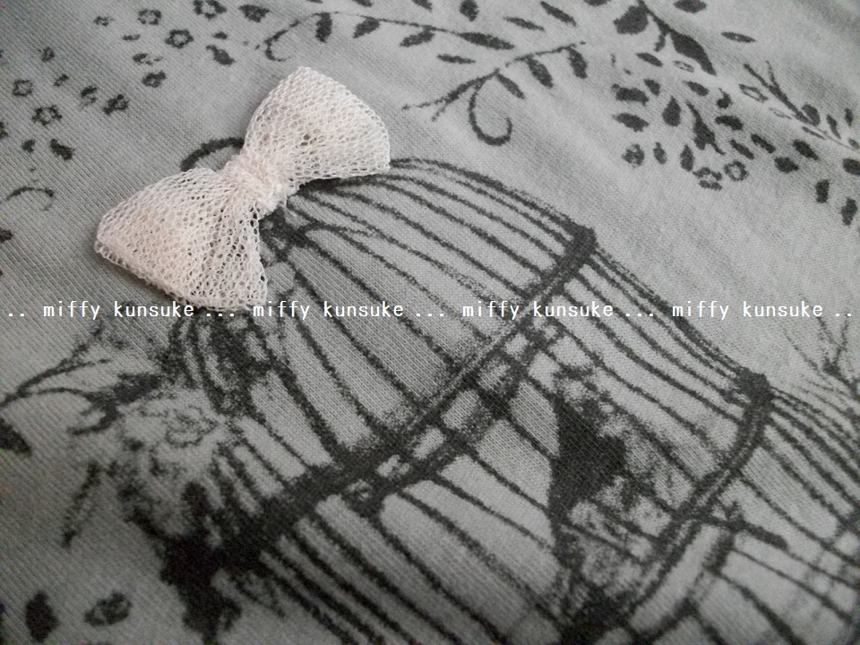 鳥かごの一番上にはレースのリボンが縫い付けられていて、ガーリーな雰囲気を出してくれて