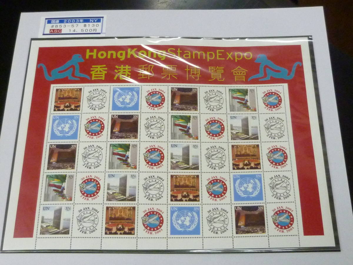 23 P №1 国連切手 NY 2003年 SC#853-857 香港郵票博覧会 20面シート 未使用NH・美品 ※説明欄必読