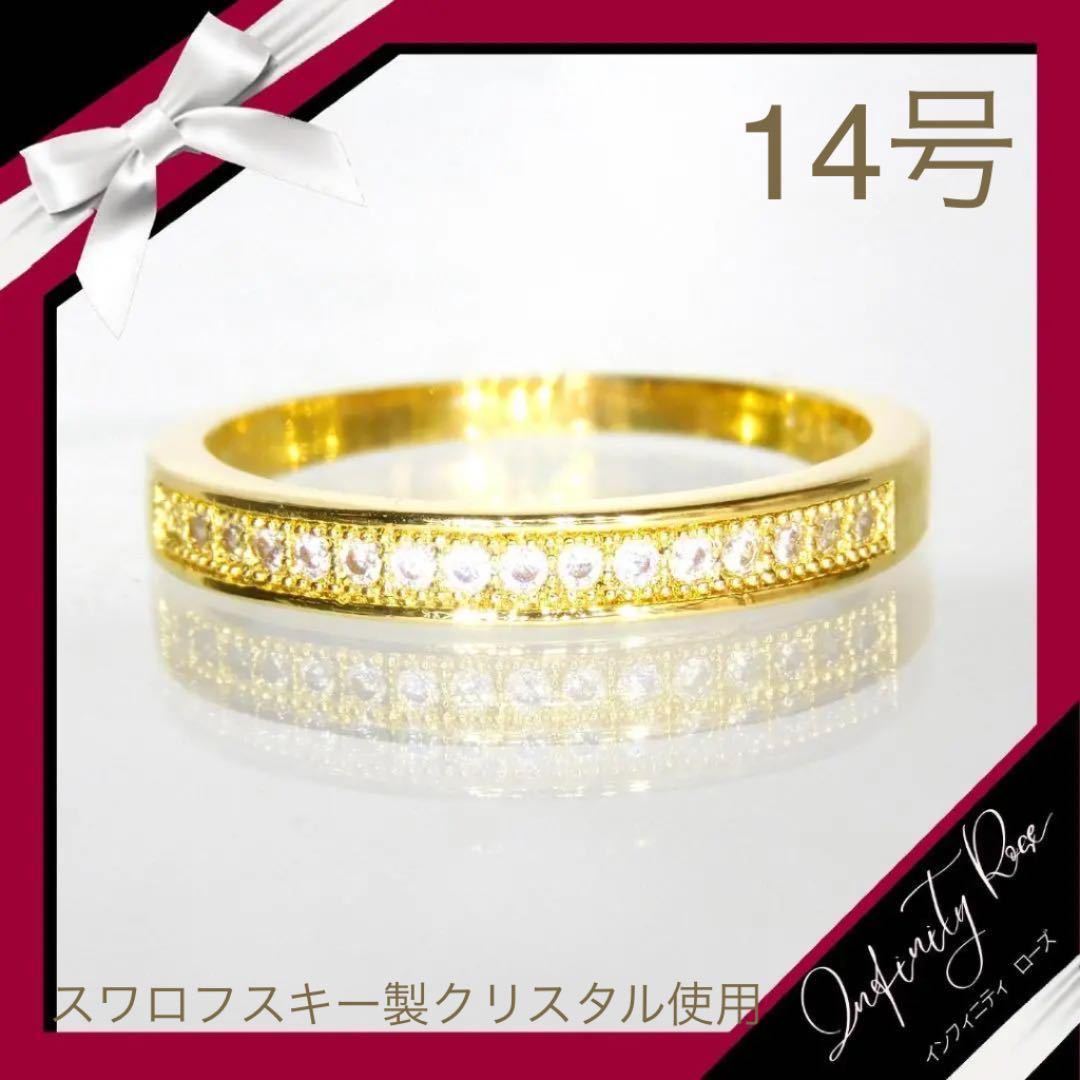 (1060)14号 ゴールド高価シンプル小粒クリスタルエンゲージリング 指輪 スワロフスキー製クリスタル使用