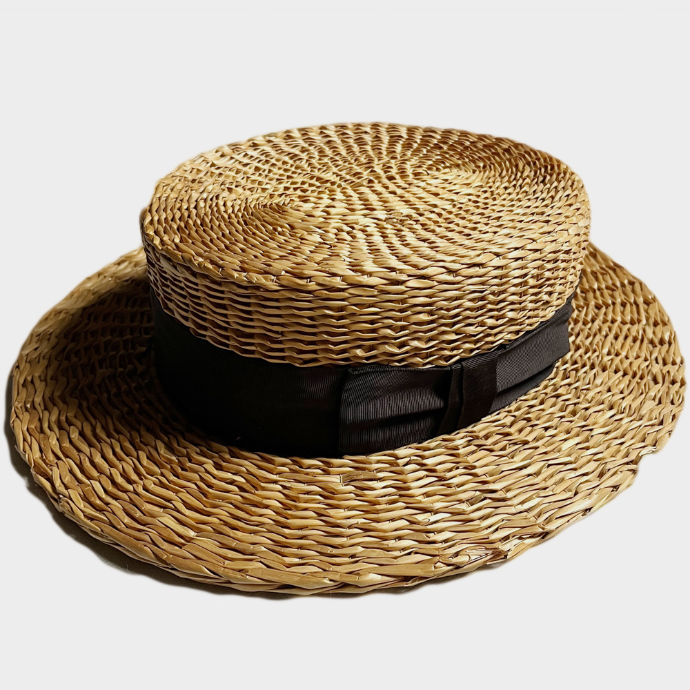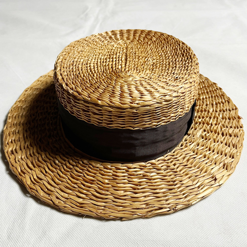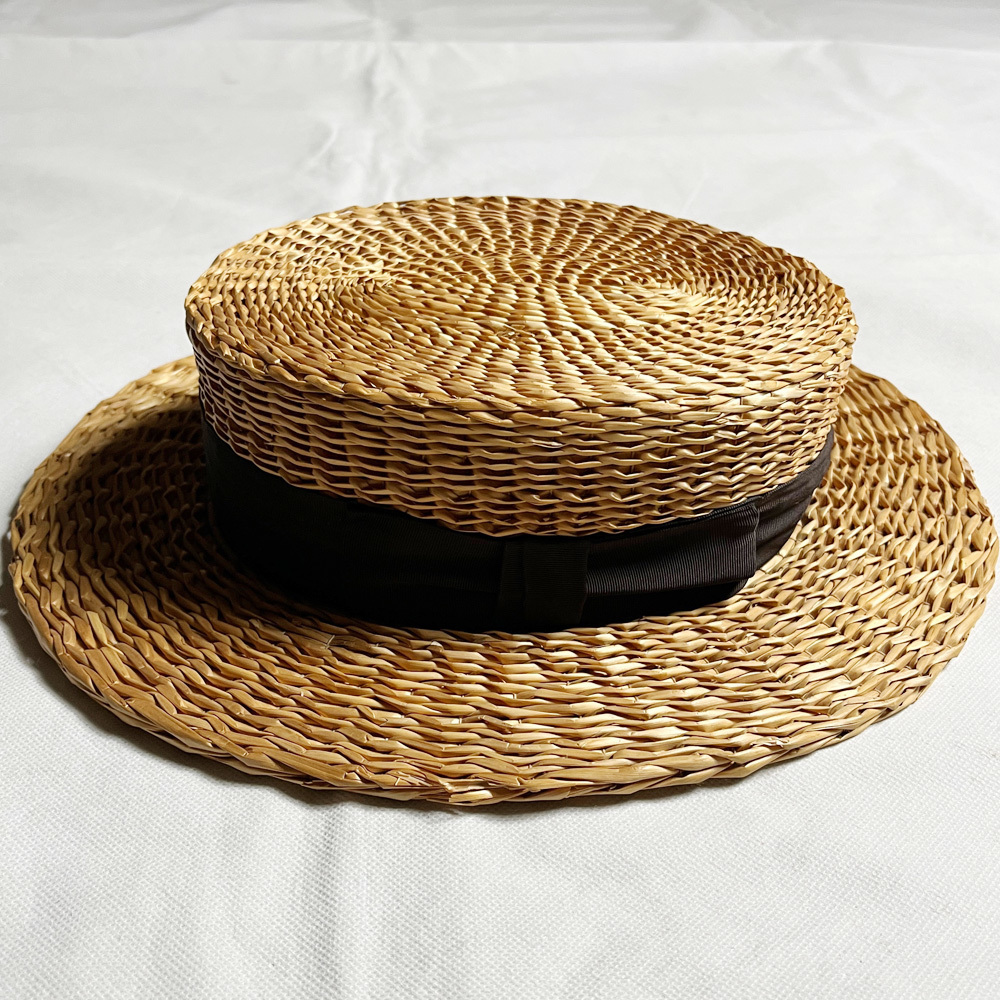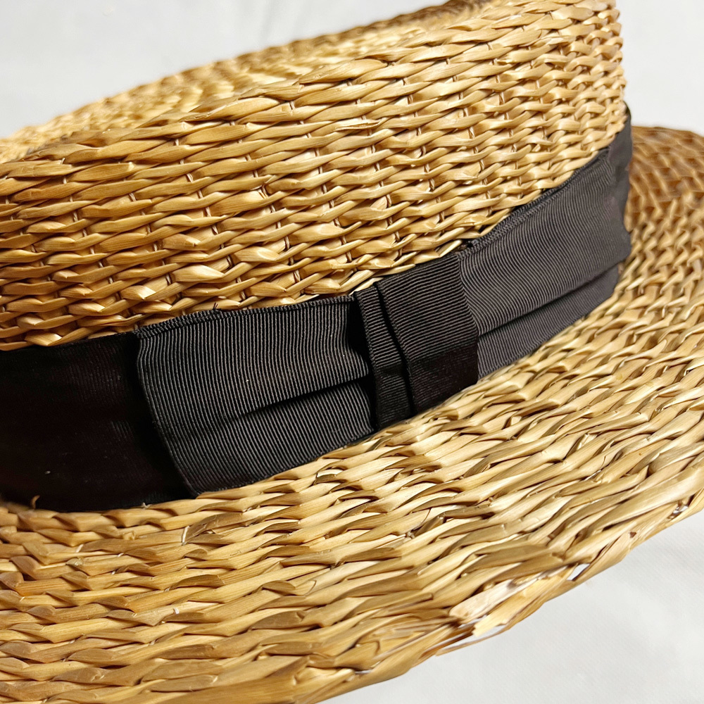 リボンが太幅のブラックカラーという人気ディテール! ヴィンテージのボーターハットですと、ストライプ柄のリボンの個体は見かけますが、一番人気のブラックリボンタイプは、実はかなり球数が少ないです!