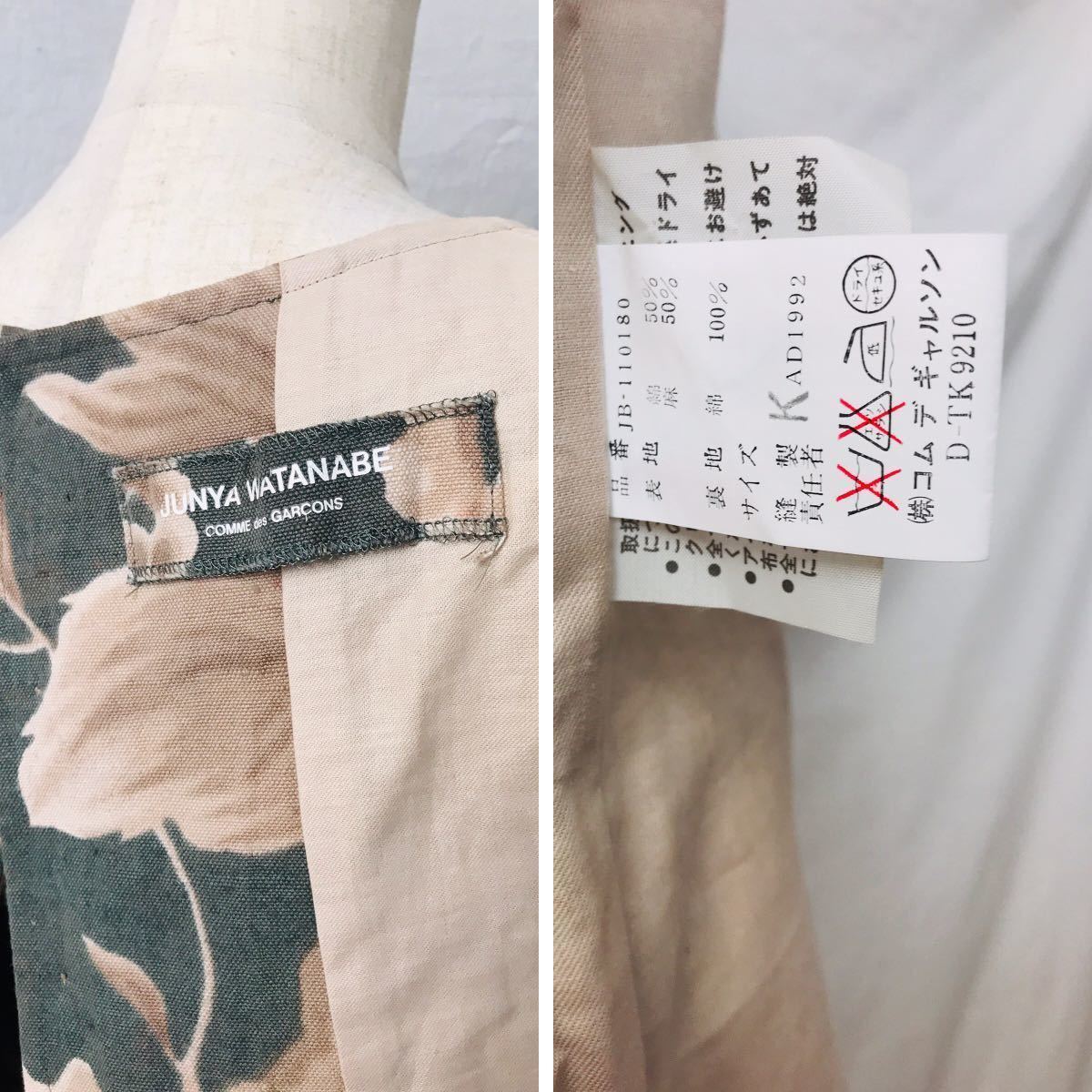 ブランドタグはアイテムに使われた素材と同じものにプリントを施すという最後までディテールにこだわったものでした。その後アンダーカバーが同じようなことをしていましたが、この頃のジュンヤワタナベがインスピレーションだと思われます。