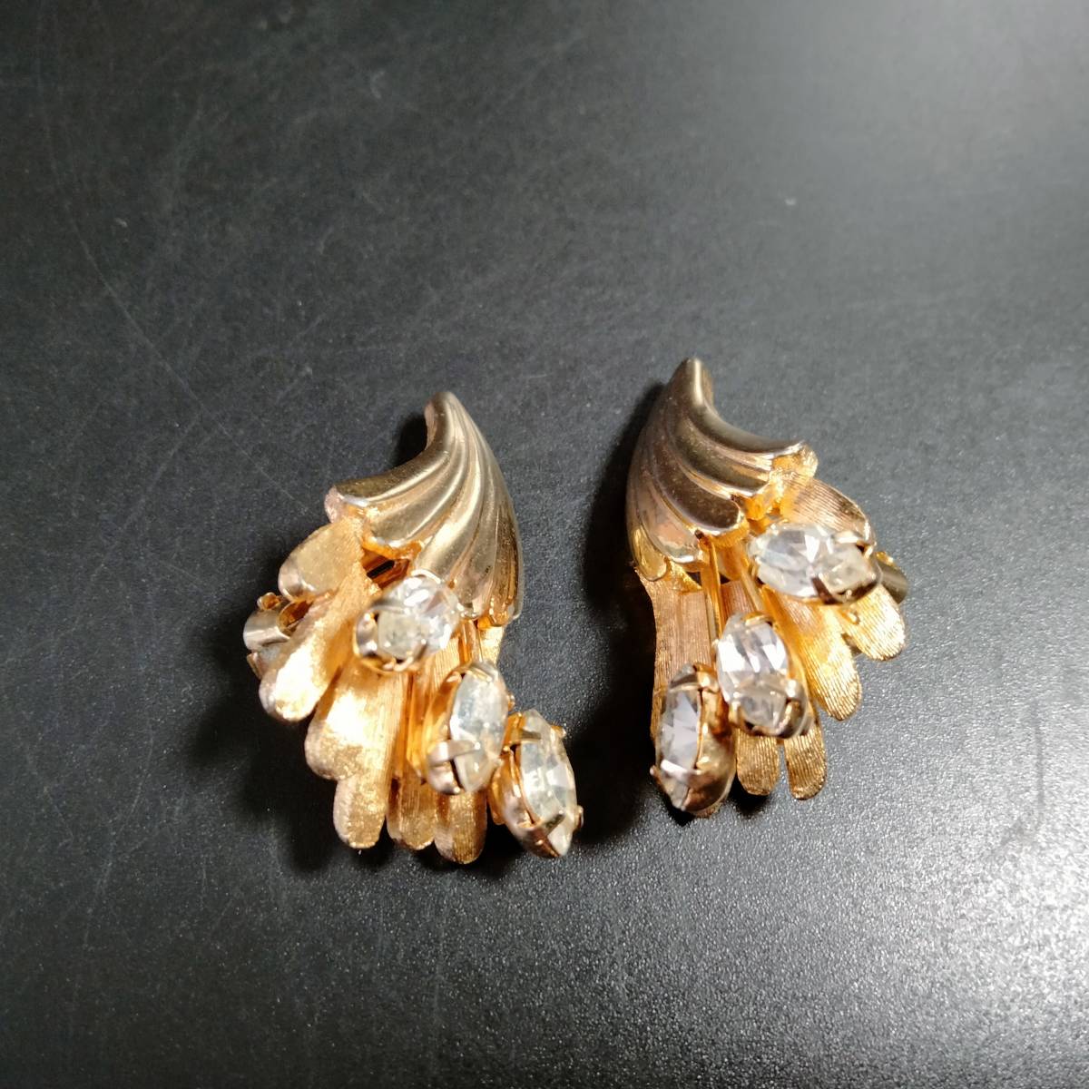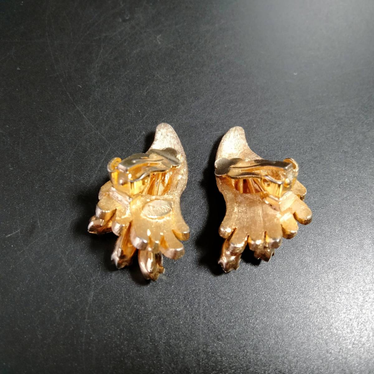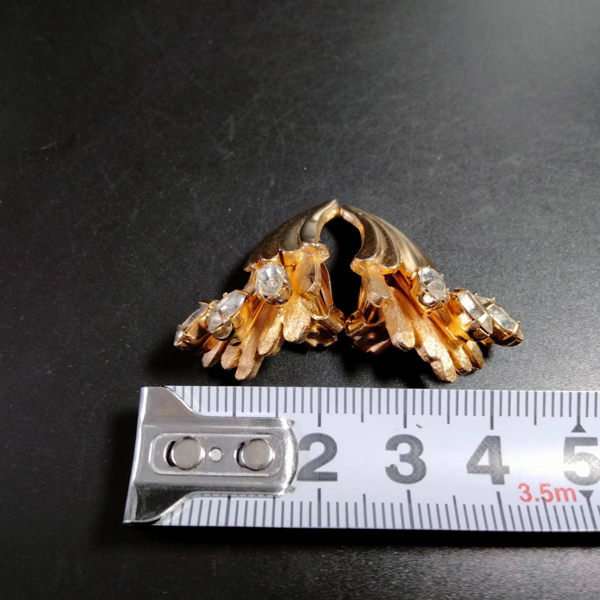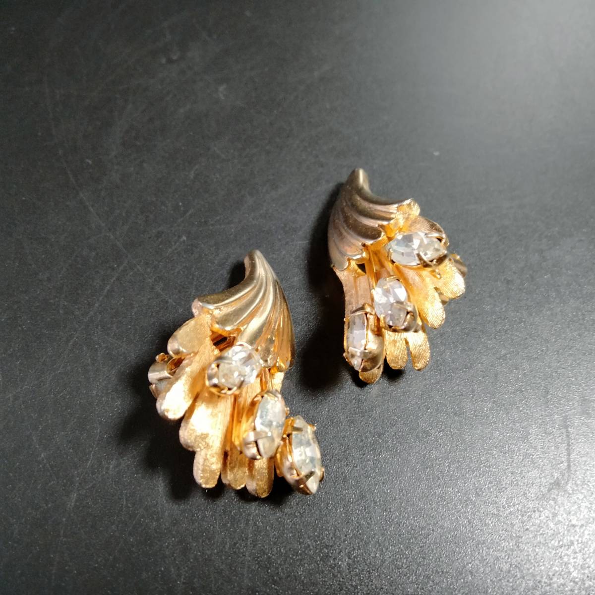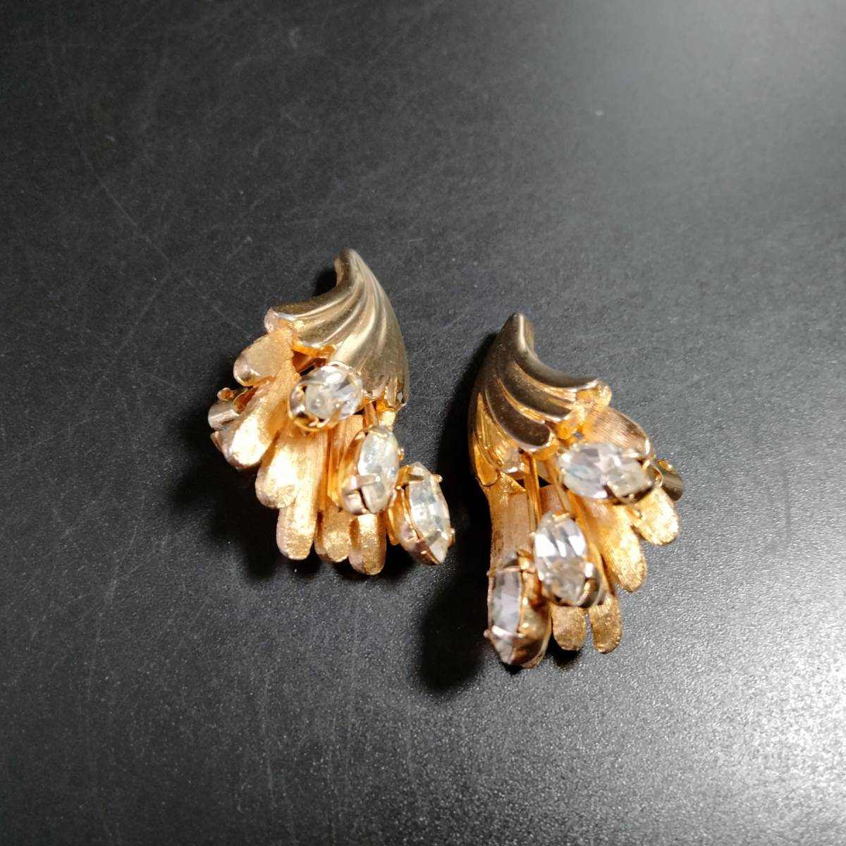 ビンテージ ピアス フラワー 花 クリア ストーン イヤリング ゴールドトーン アールデコ 昭和レトロ コスチューム ジュエリー SFNE7