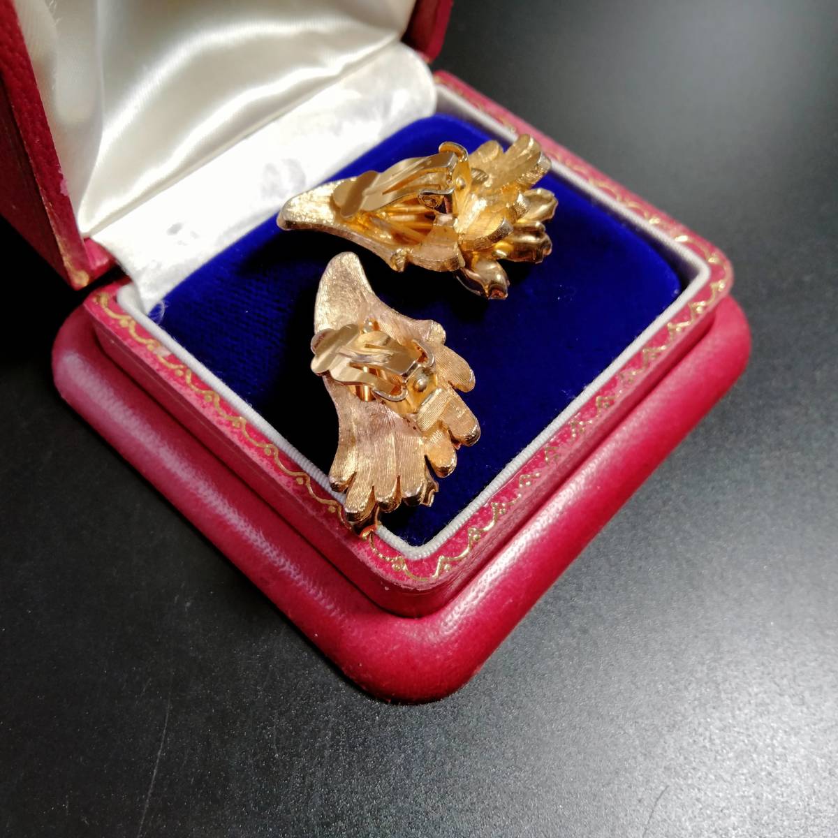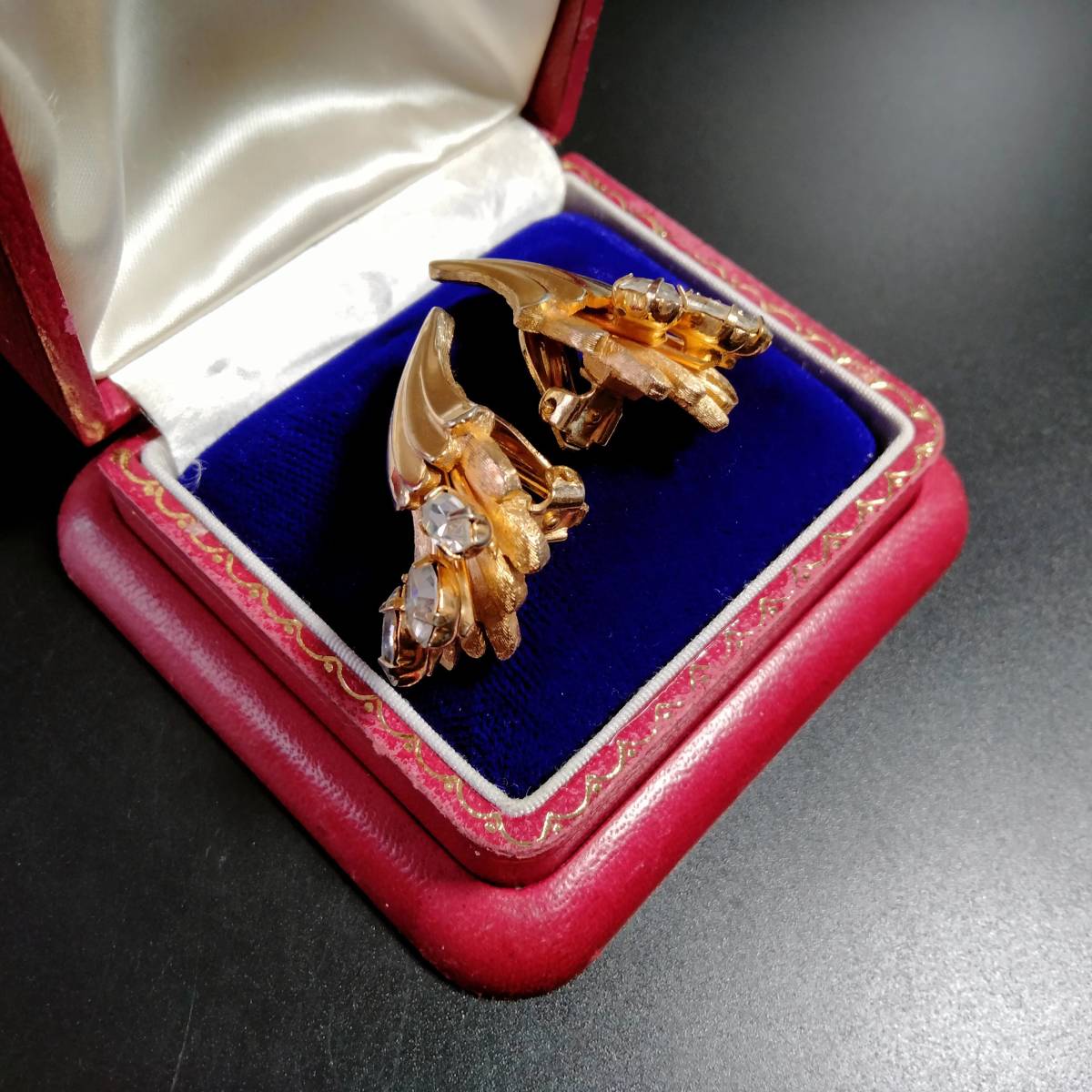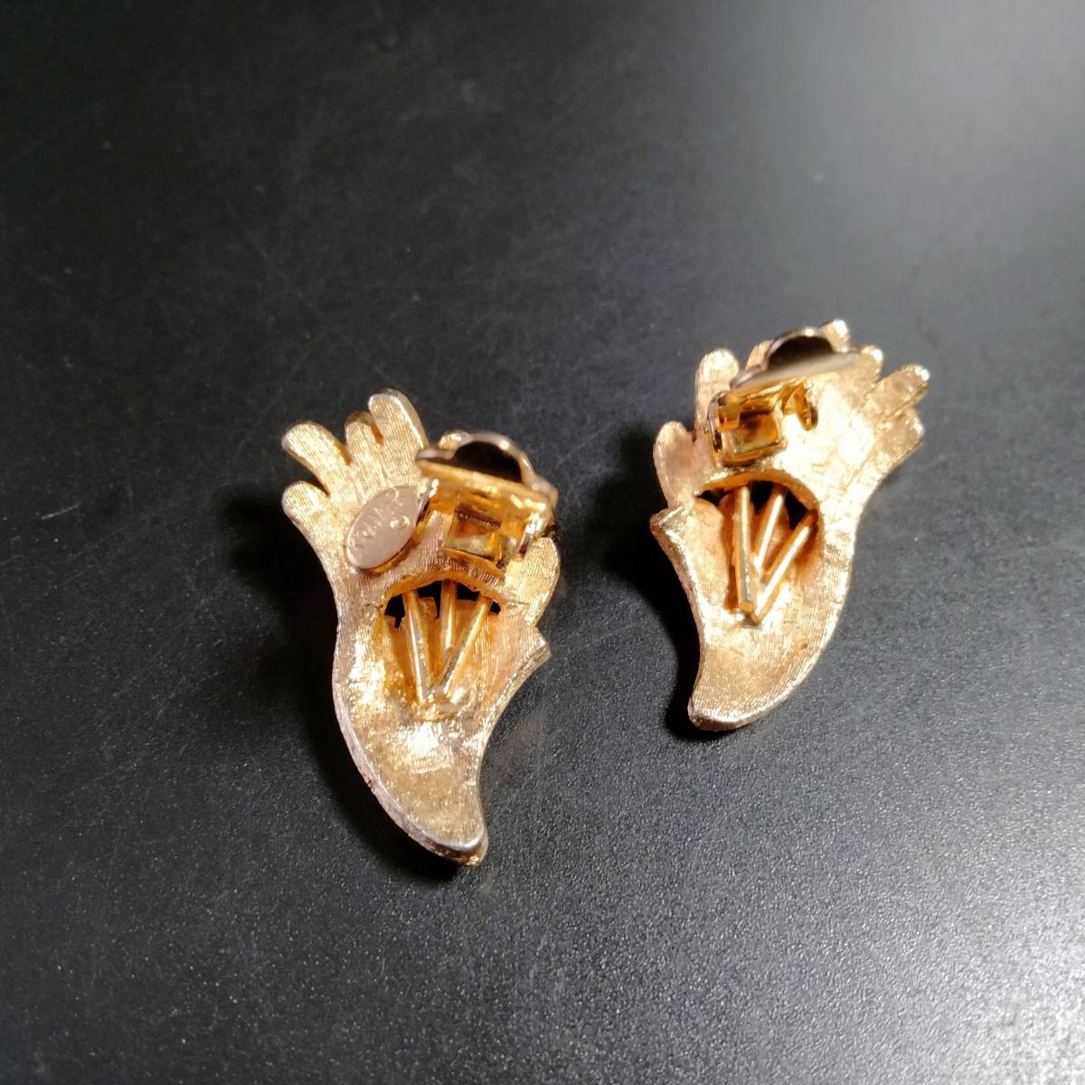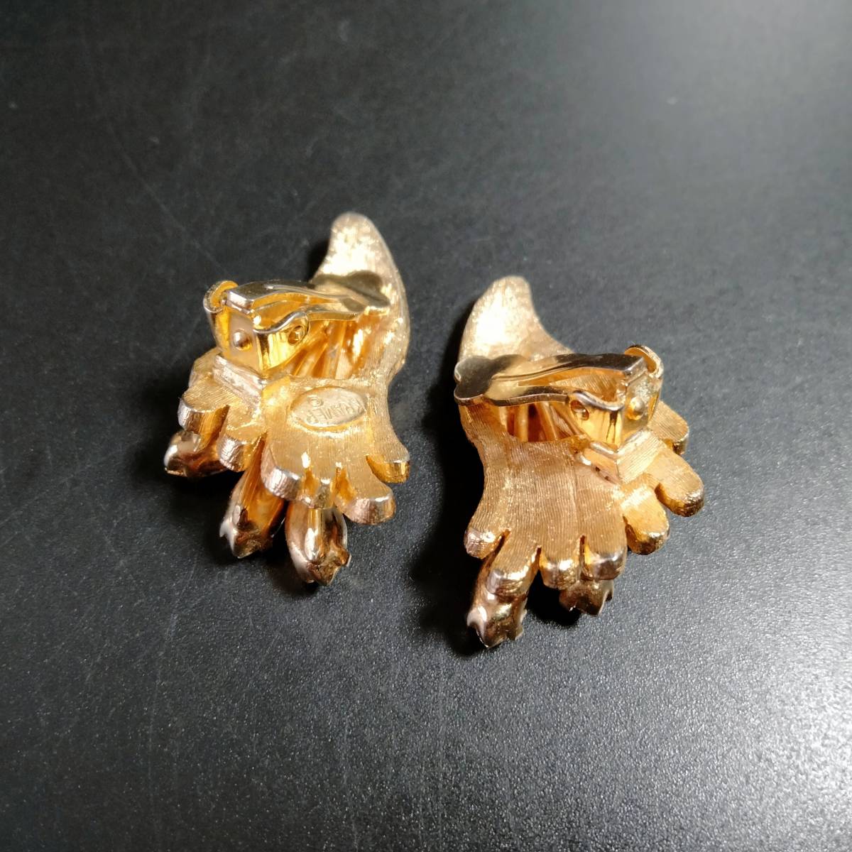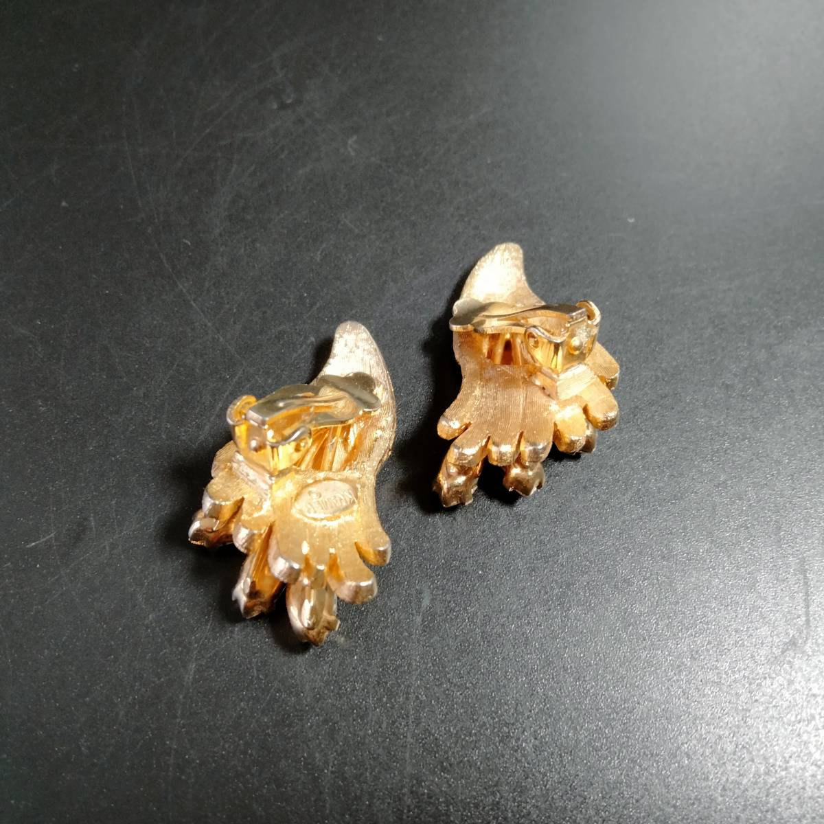 ビンテージ ピアス フラワー 花 クリア ストーン イヤリング ゴールドトーン アールデコ 昭和レトロ コスチューム ジュエリー SFNE7