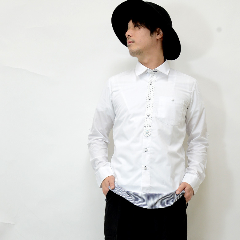 ■フロント部分、襟元からタイ部分にドット柄がお洒落です。