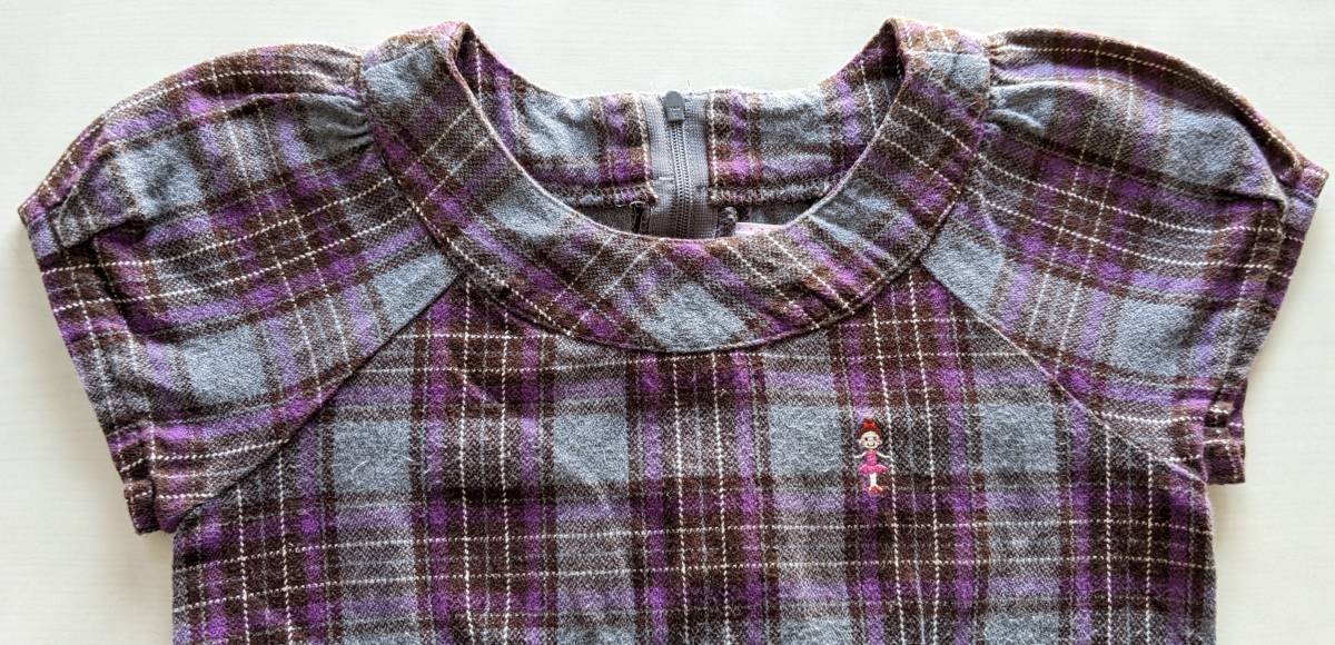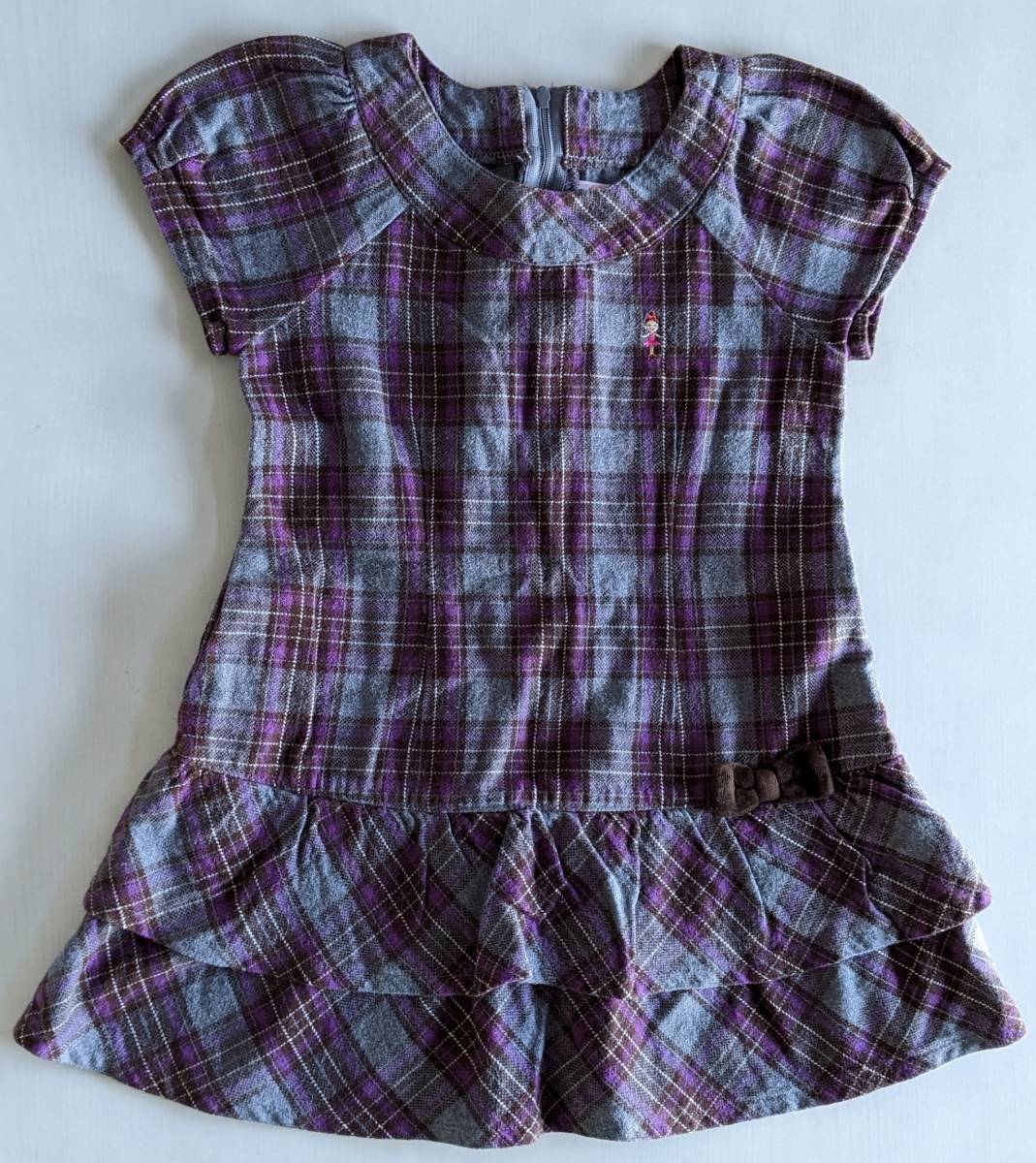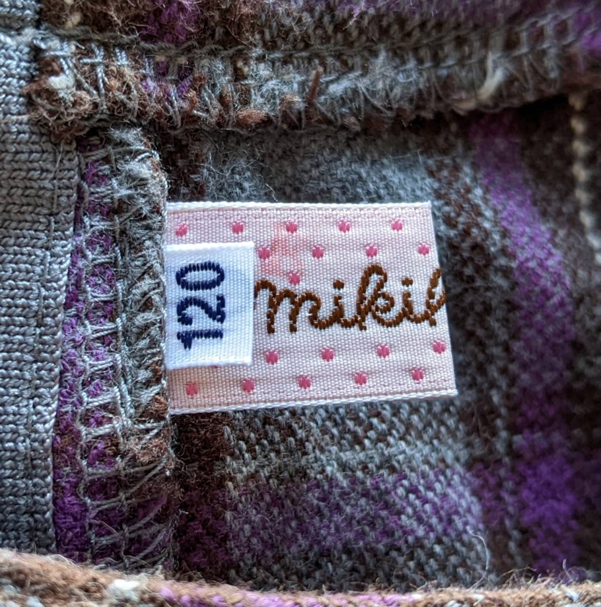【送料込】〈mikihouse〉 女児ワンピース 120cm 紫/灰 縦チェック