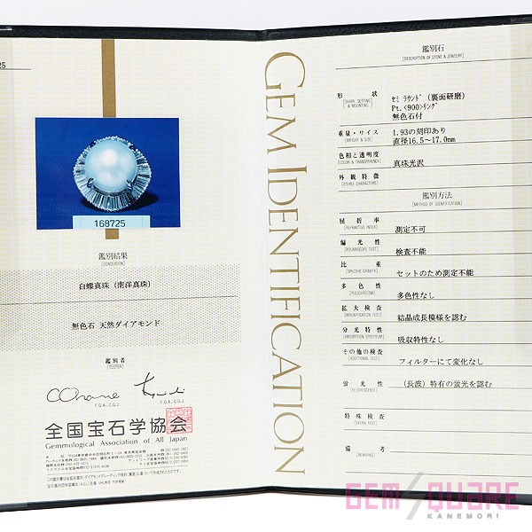 | 宝石名:白蝶真珠(南洋真珠) ダイヤモンド | ||