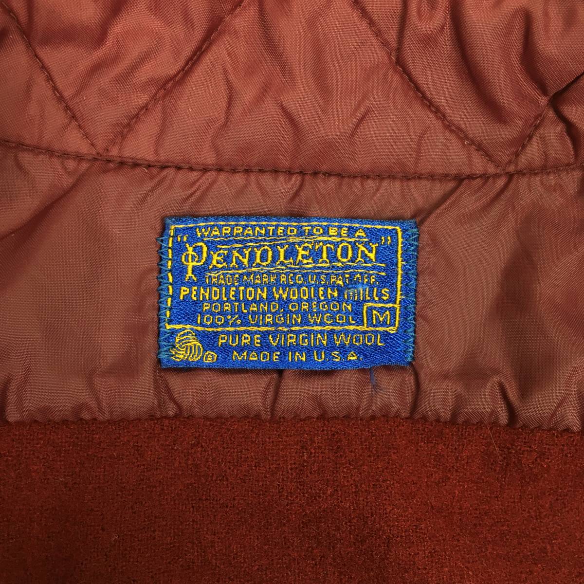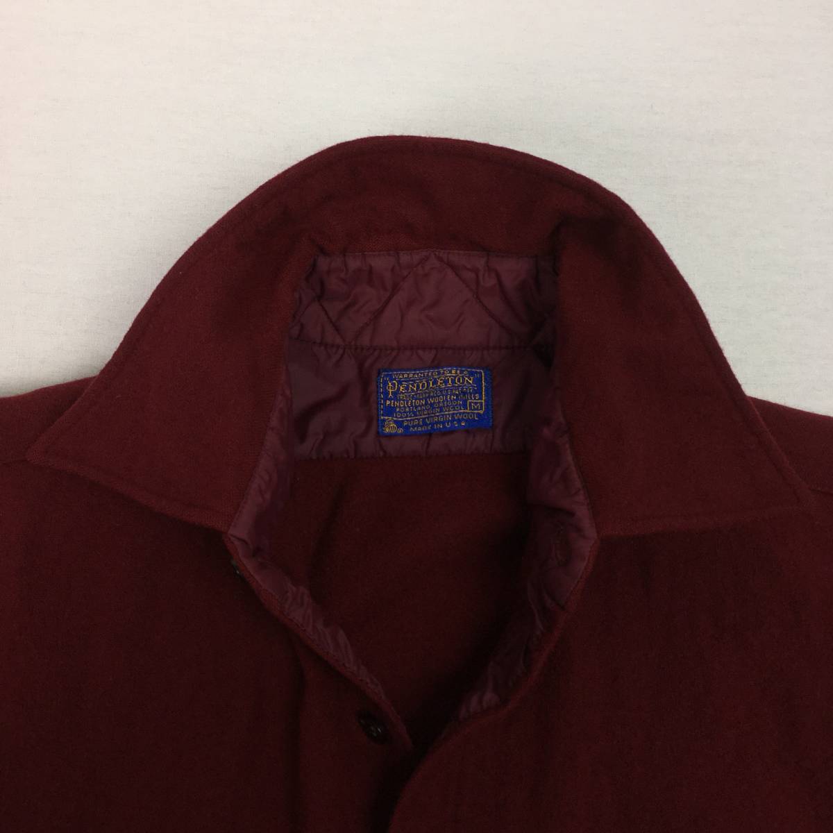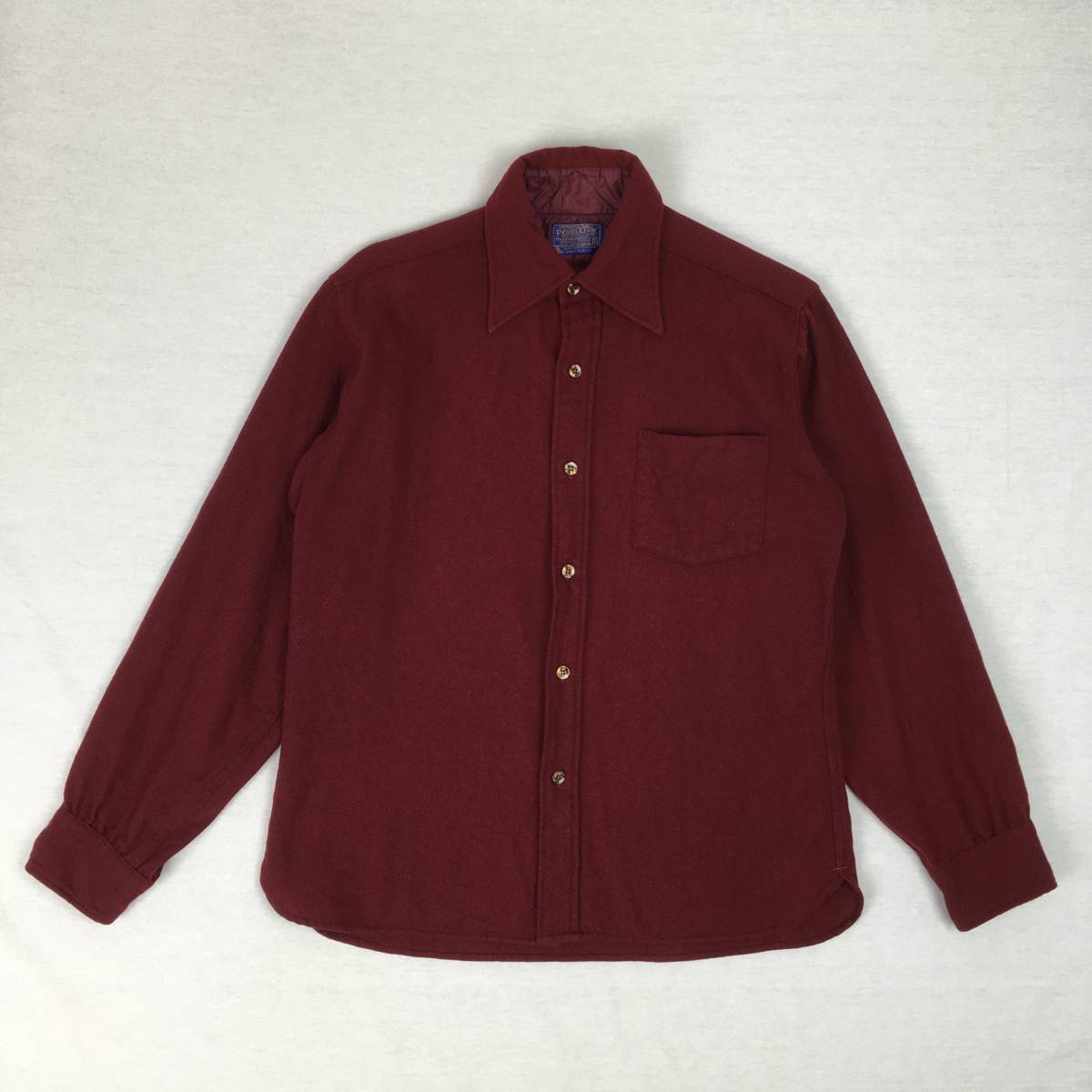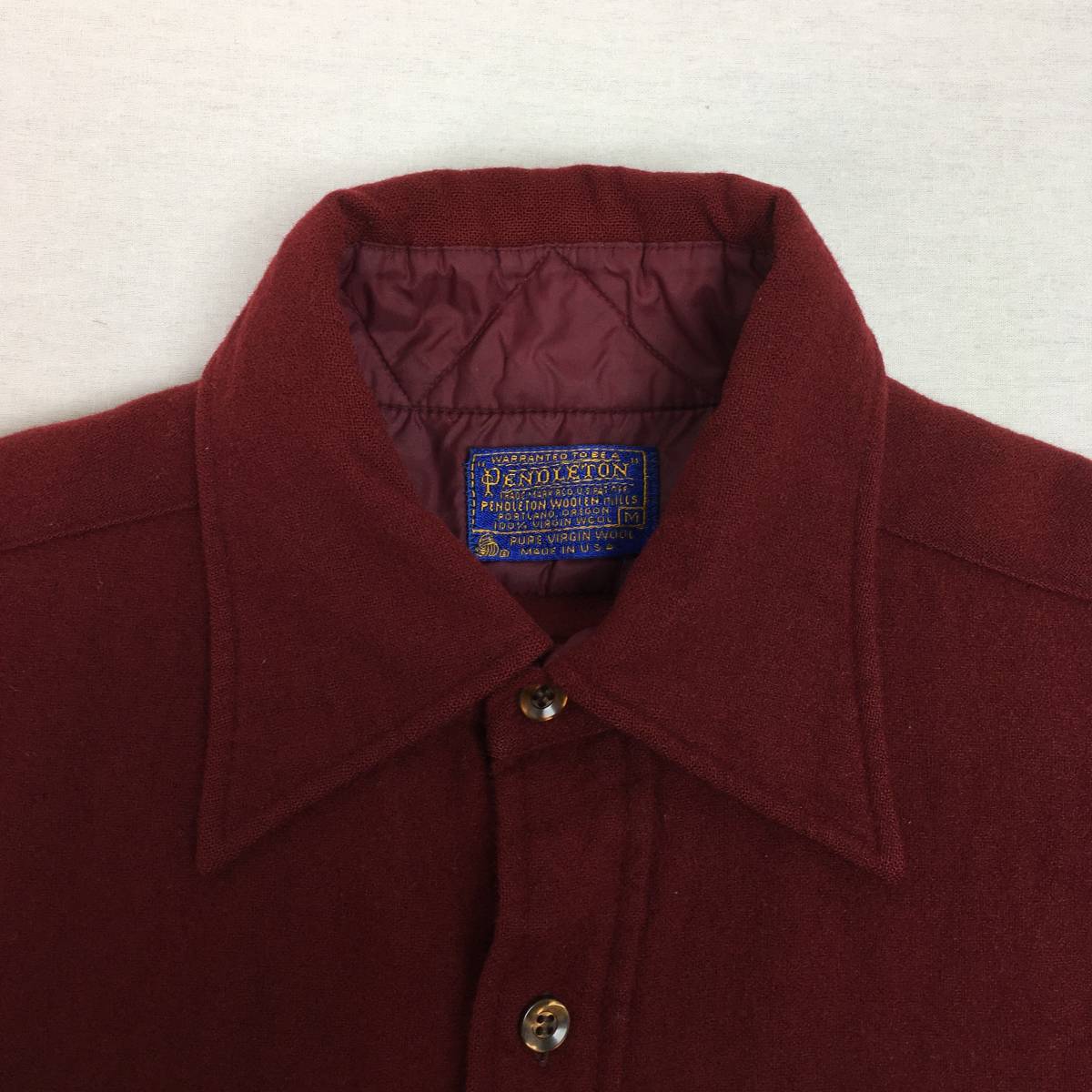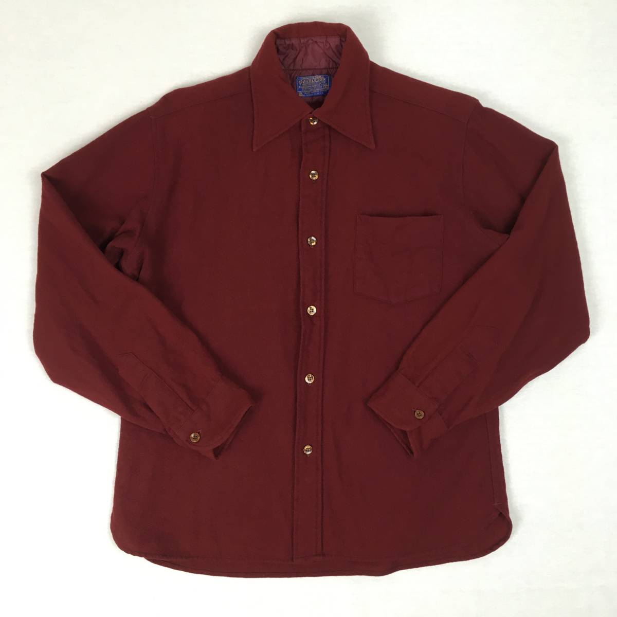 【70s】PENDLETON ペンドルトン 米国製 ウールシャツ Mサイズ ワインレッド 70年代 長袖 洗濯表示タグ