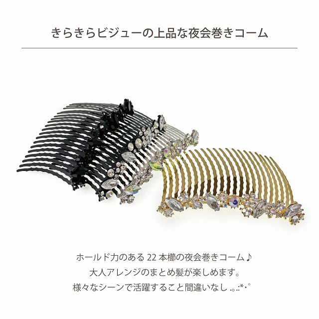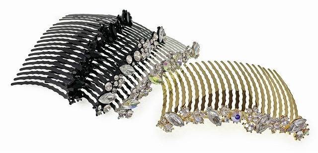 たくさんのラインストーンで飾られた豪華な夜会巻きコームです。 | ||