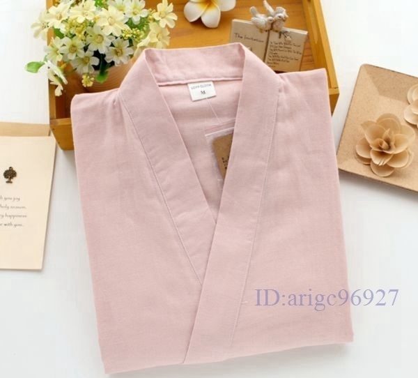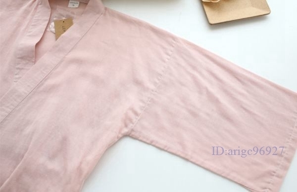 B228★レディース M.Lサイズ 七分袖 ピンク系 コットン ガーゼ 柔らか 肌さわり 心地良い パジャマ 部屋着 ルムウエア 作務衣