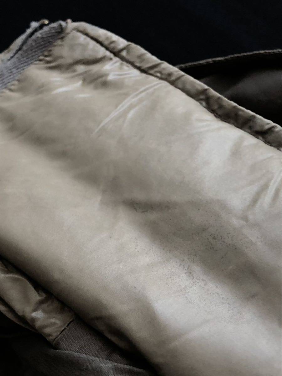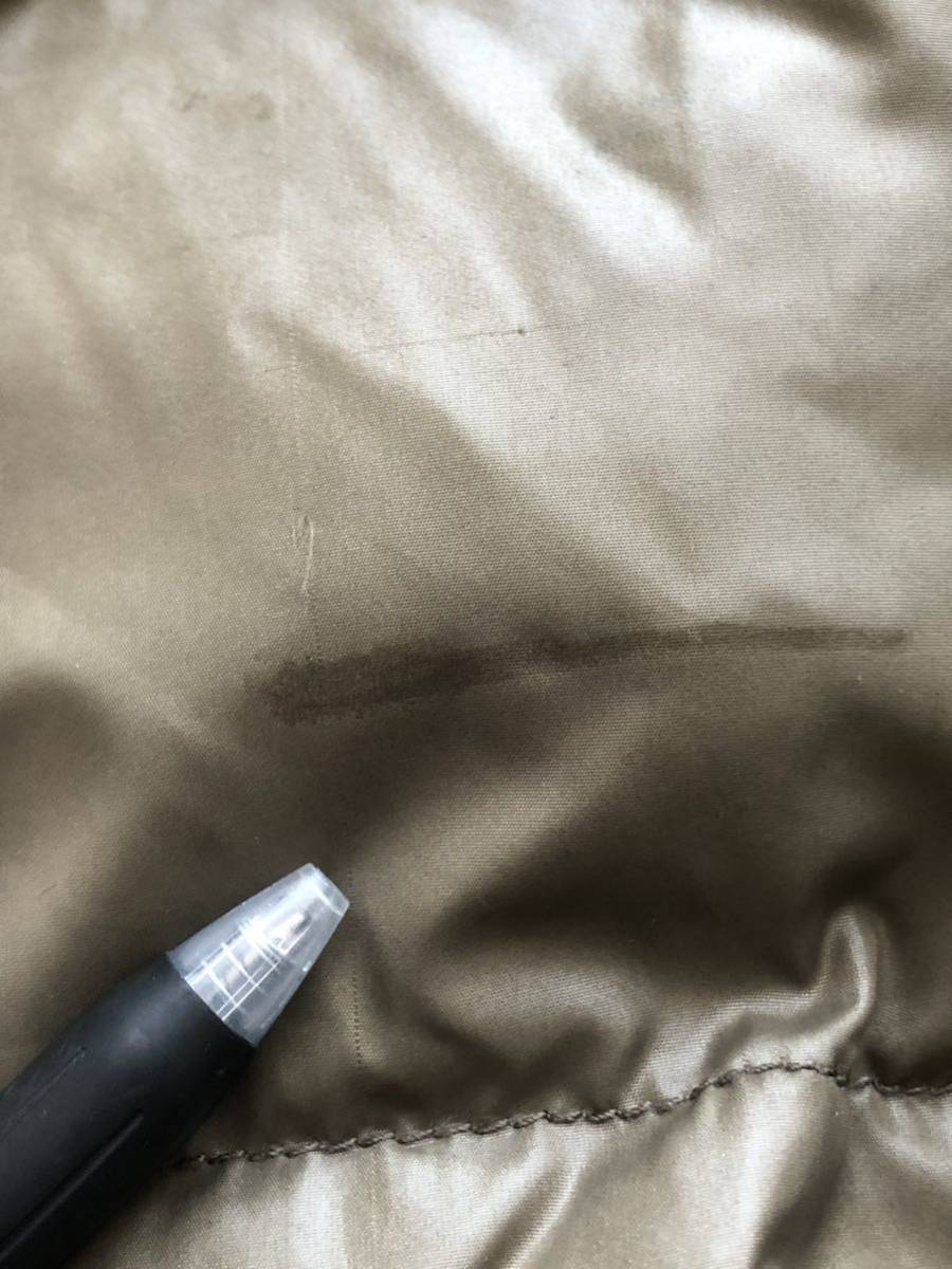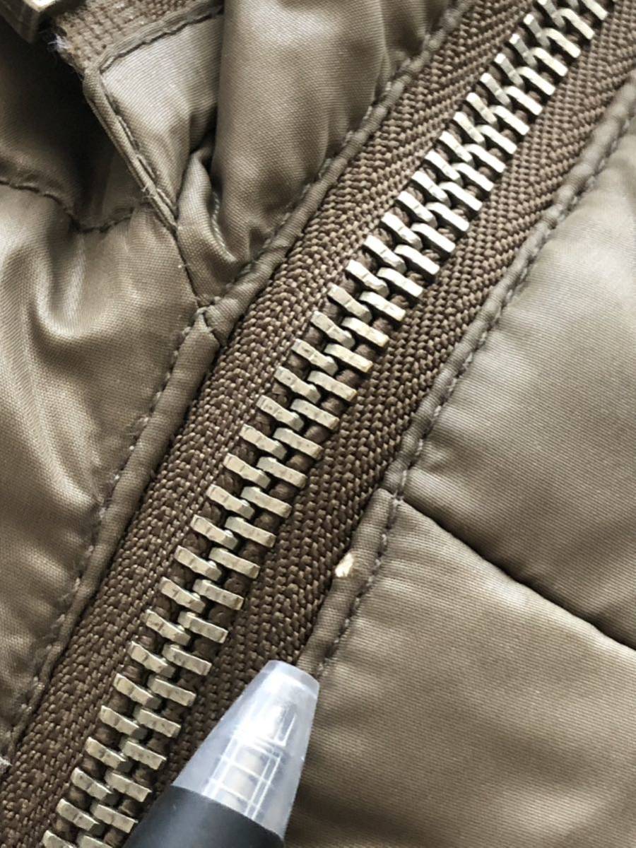 ・右胸上部(ジッパー横)に小さな生地の剥がれがあります。
