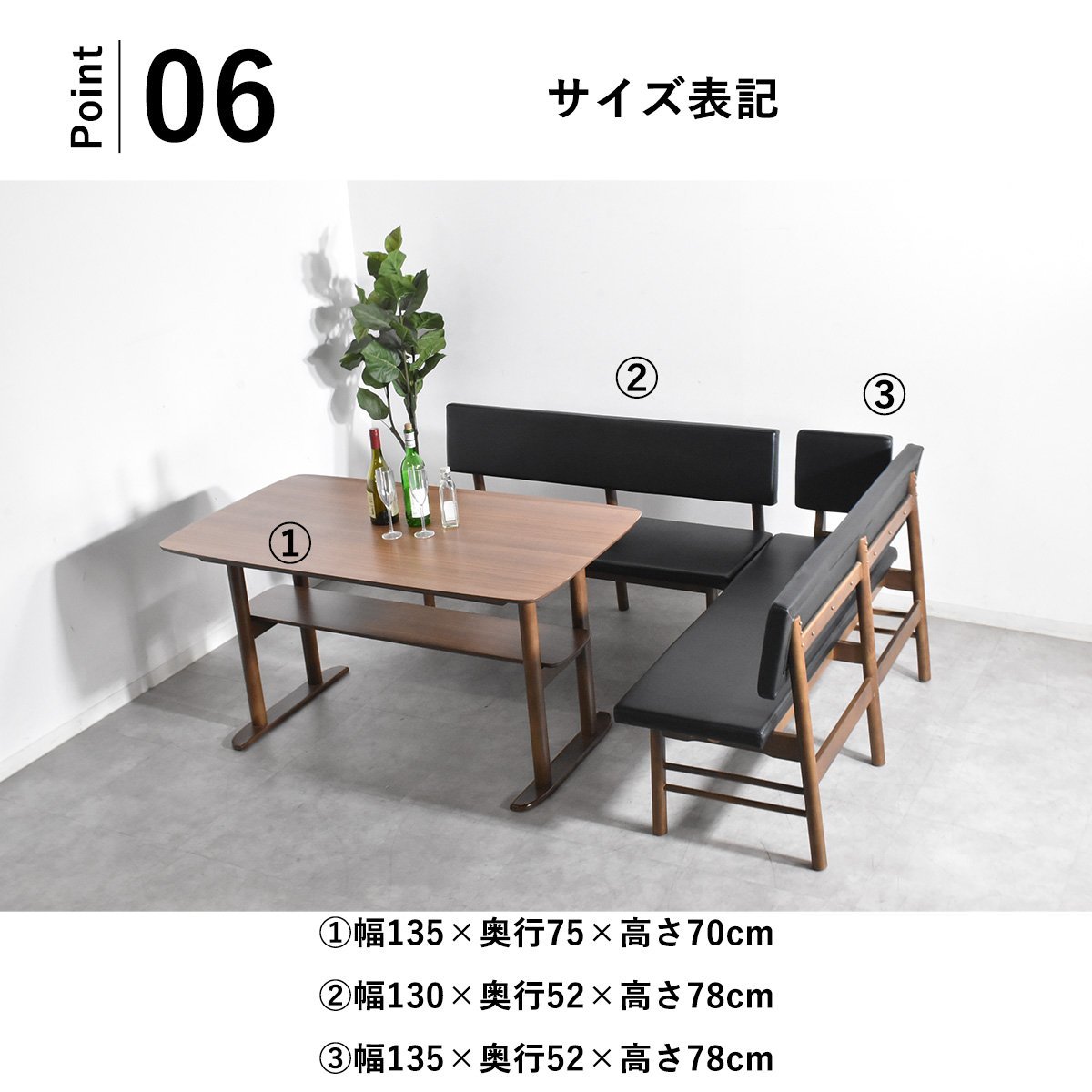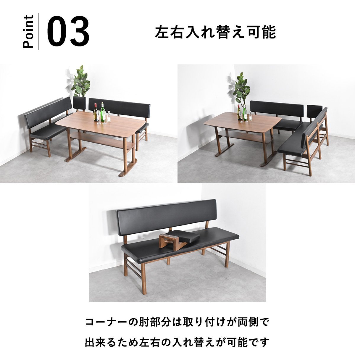 ウォールナット材135cm幅コーナーダイニングテーブルセットです。 仕様詳細は写真を参照お願いします。 |