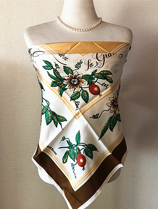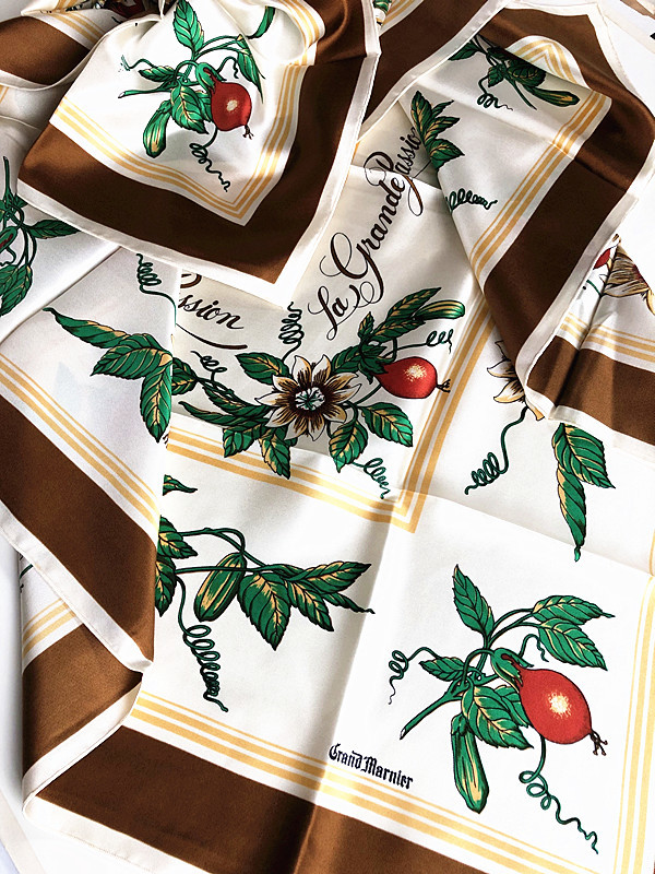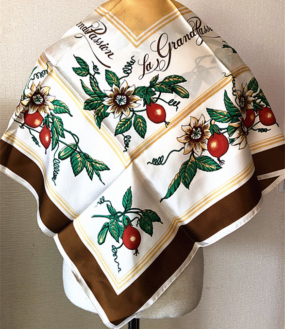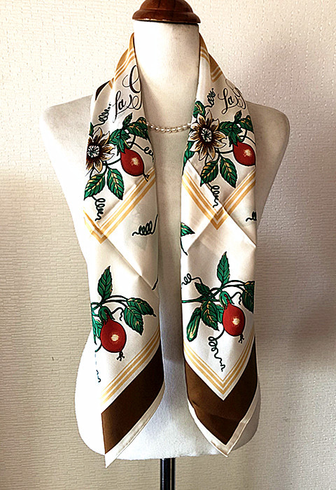 稀少柄 フランス製Francois de Reix lyon Paris★ La grande passion果実柄 大判スカーフ ビンテージ(E2)