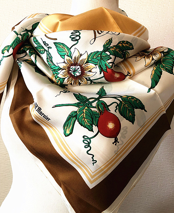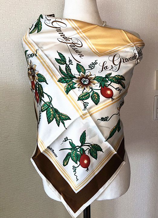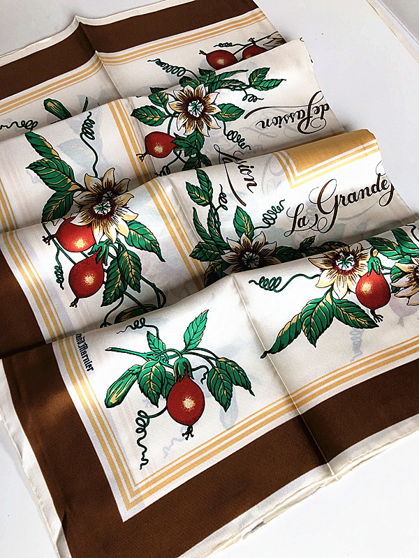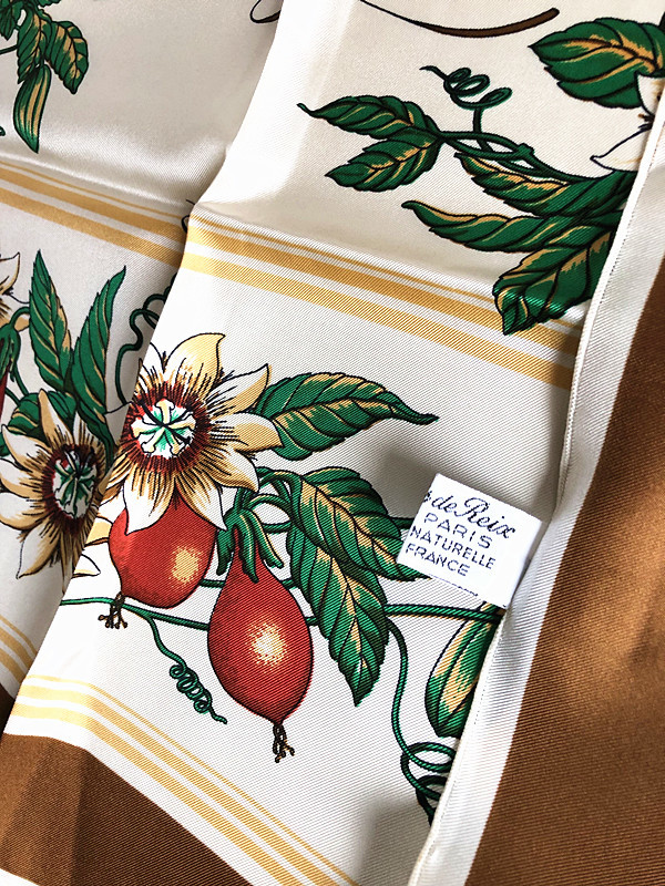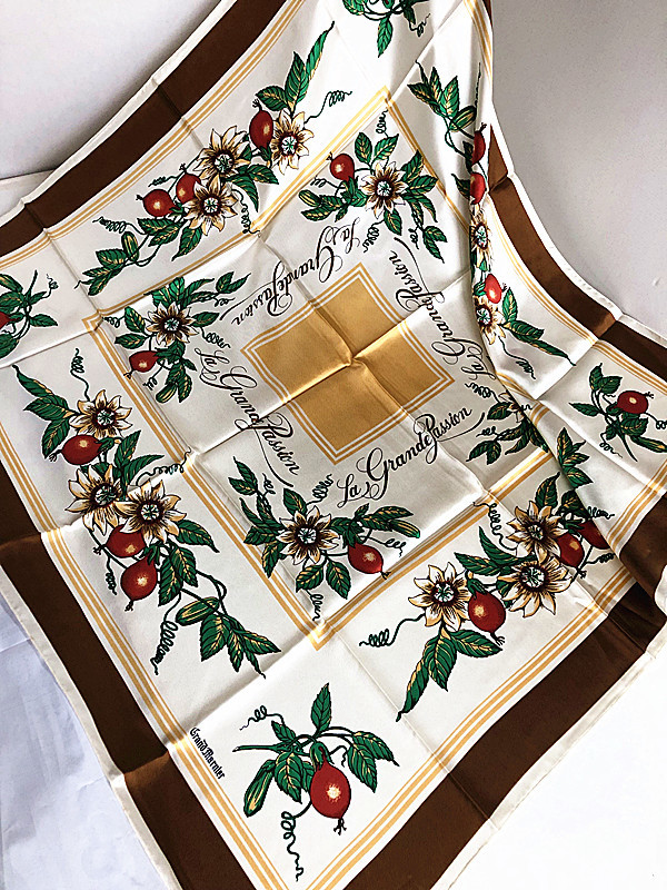 稀少柄フランス製Francois de Reix lyon Paris★ La grande passion果実柄 大判スカーフ ビンテージE2