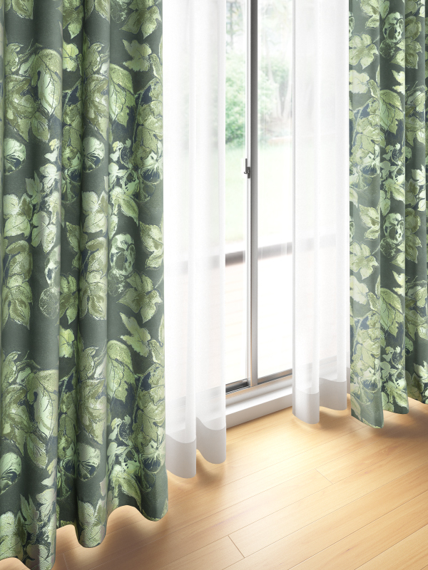 生地の販売です。カーテン生地のため写真はカーテンやクッション・ローマンシェード等の写真です。