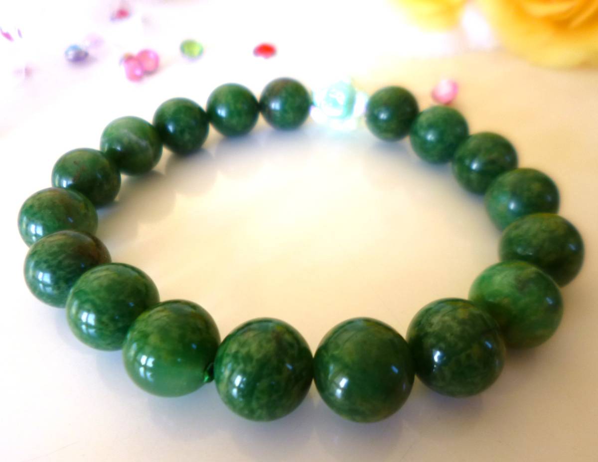 ☆疲労回復☆緊張緩和☆精神安定☆人間関係回復☆コミュニケーション能力☆天然グリーンクォーツ☆薔薇ビーズ☆ ☆10mm☆15.5cm