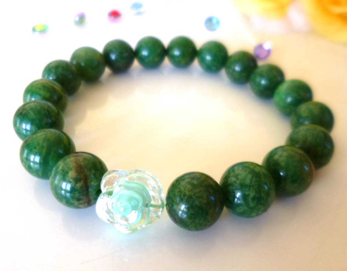 疲労回復☆  ☆緊張緩和☆  ☆精神安定☆  ☆人間関係回復☆  ☆コミュニケーション能力☆  ☆天然グリーンクォーツ☆  きらきら薔薇ビーズ☆  10mm☆  ☆15.5cm