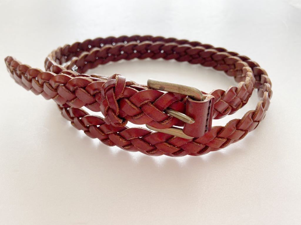 美品 ANGLO イギリス製 編み込み レザーベルト ゴールド 真鍮色 ブラウン 茶 アングロ