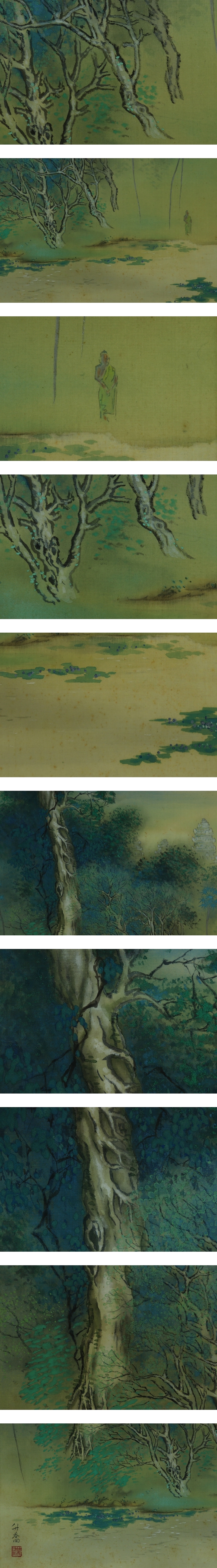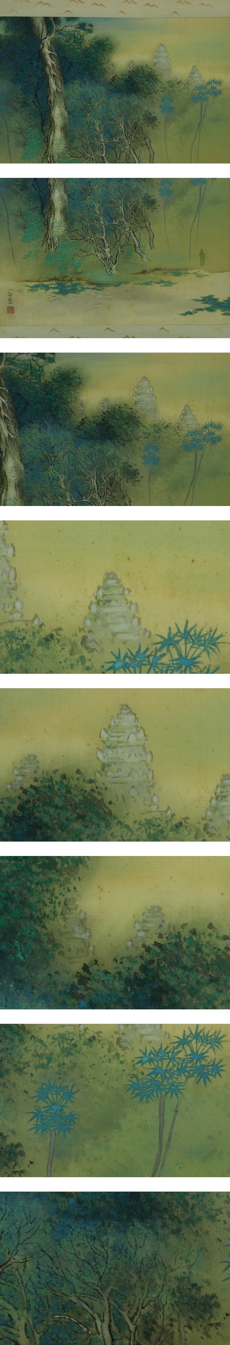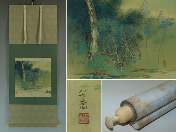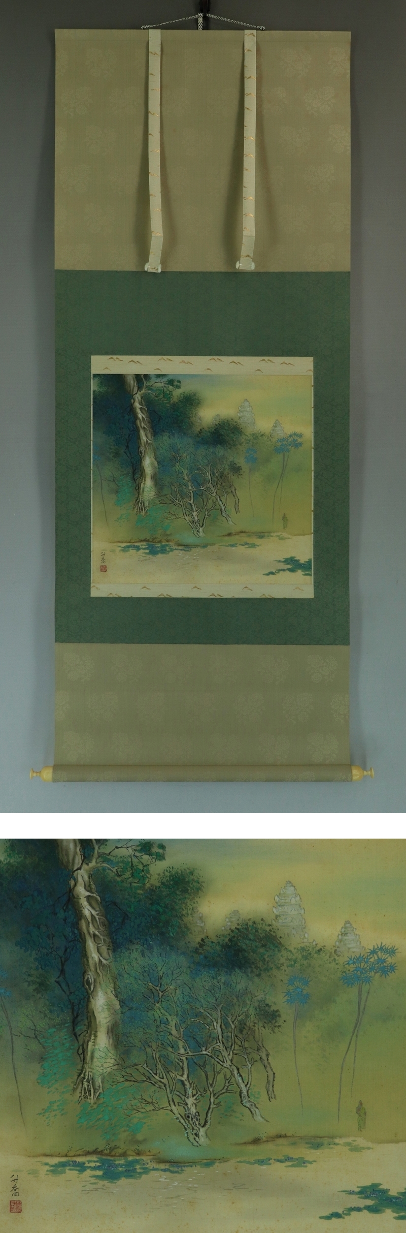 | №2212053【模写】小野竹喬【仏塔】◆絹本◆合箱◆二重箱◆掛軸 | |