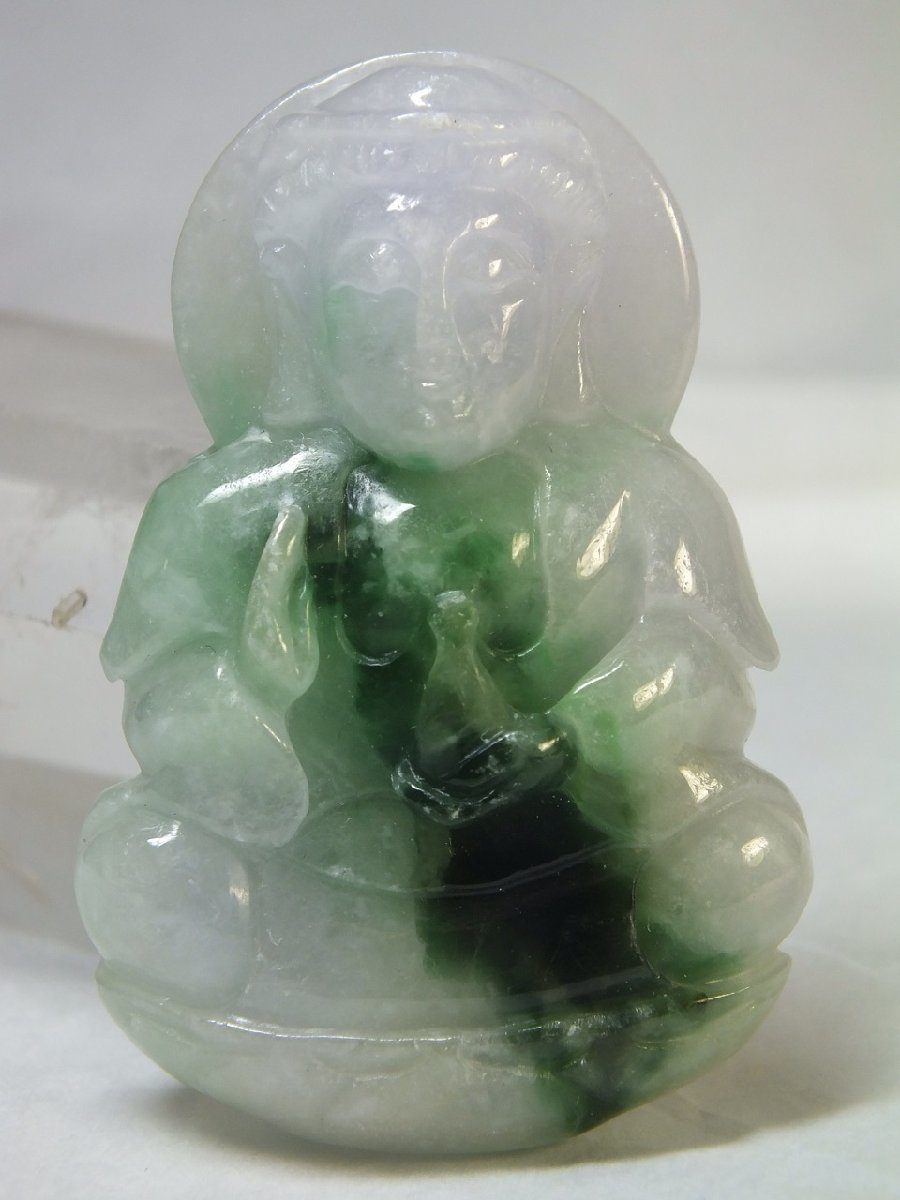 ▲商品説明▲ | サイズ:53×35×厚12mm 重さ:35.7g 緑色が綺麗なミャンマー翡翠。縁起柄の観音様が彫り込まれています。石コレクションやお守りに。上部に貫通穴が有るのでペンダントトップや下げ飾り等にもなります。 ☆商品につきましては注意を払った検品を行っておりますが、稀に石の表面にクラック状の筋や凹みが見受けられる場合が御座います。それは石本来の石紋で傷ではありません(割れが生じ易いヒビではありません)。返品の対象にはなりませんのでその旨御了承の上、ご検討下さい。 |