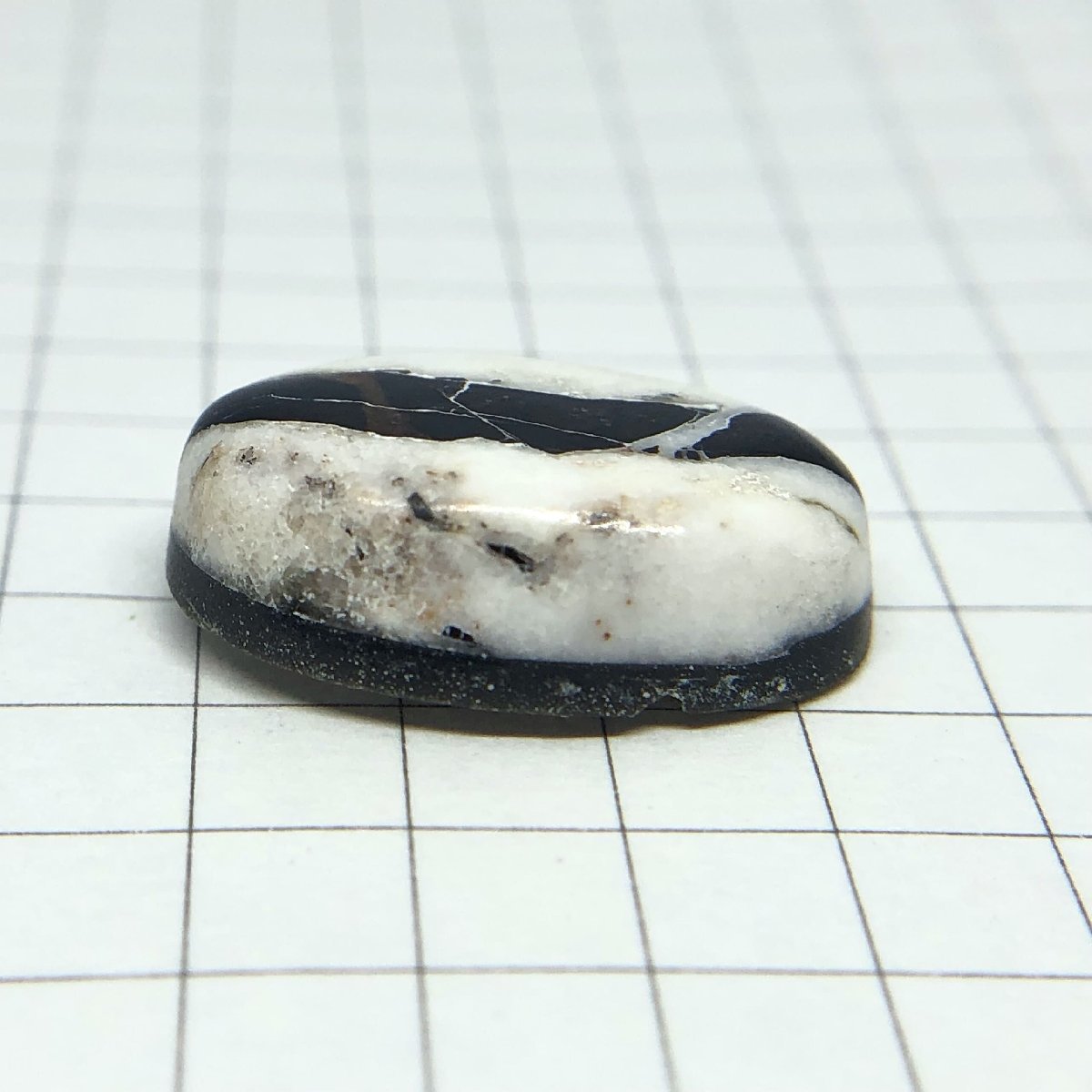 ※大きさが分かりやすいように5mm方眼紙を下に敷いて撮影しています。石の下に置いた両面テープを丸めたすべり止めが写真に写っていることがありますが、石の下は平らです。