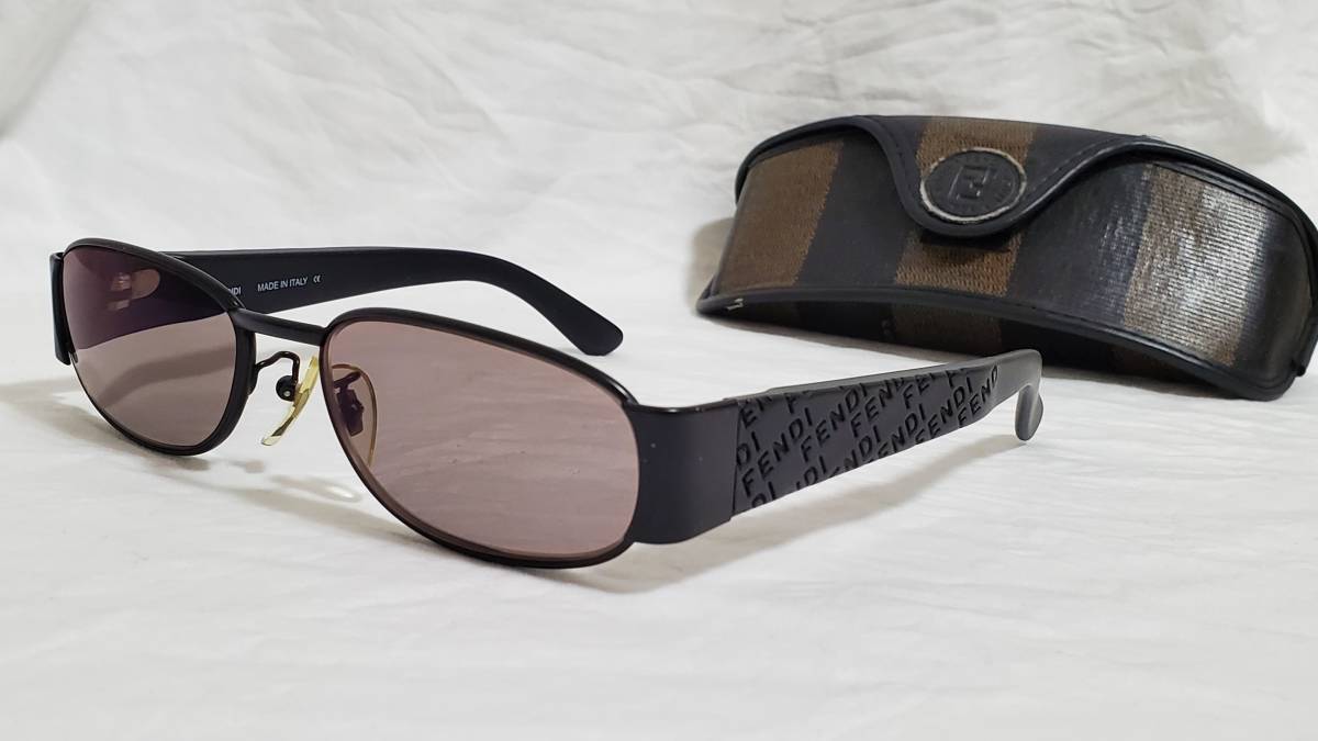 正規 FENDIフェンディ メタルコンビアイウェア黒 グラデーションロゴ レタリングアイコンフレーム ラグジュアリーサングラス○眼鏡 付属有