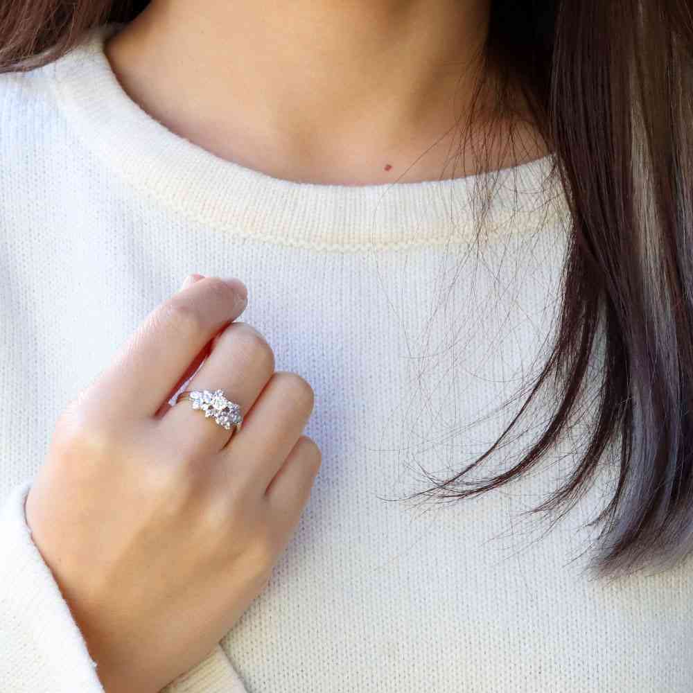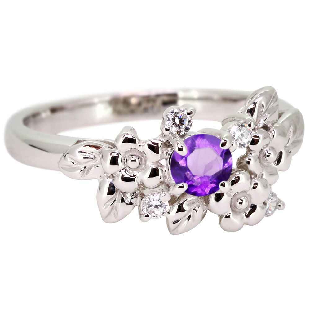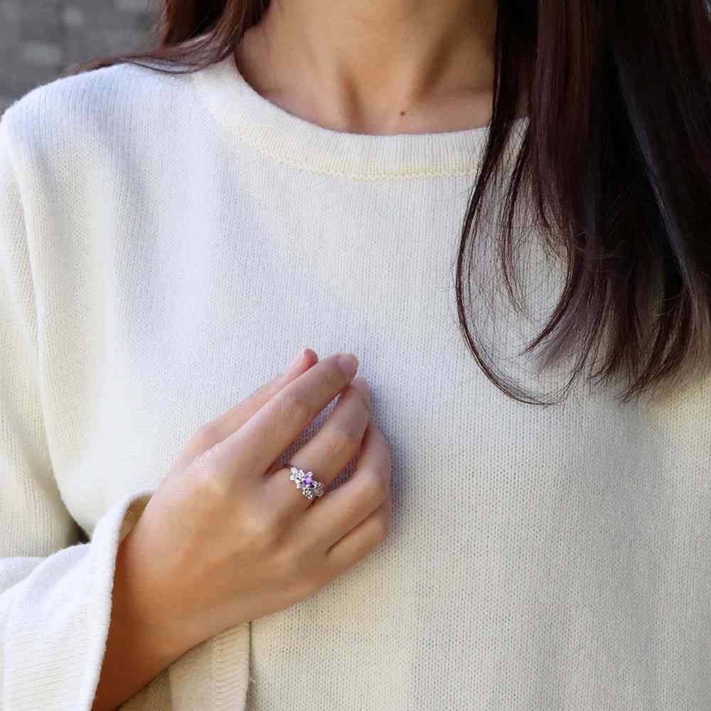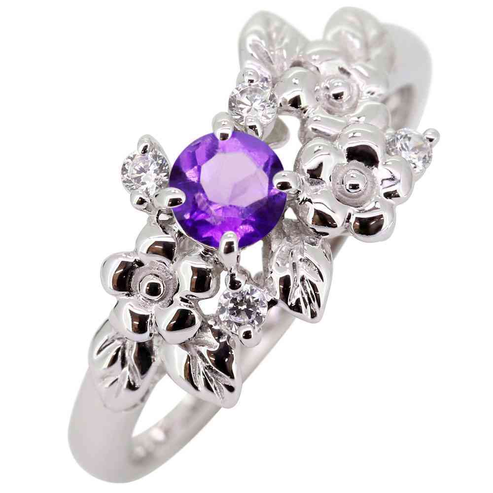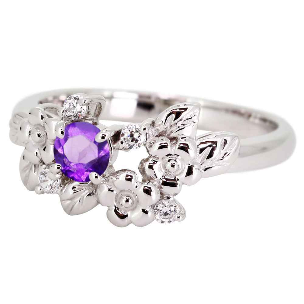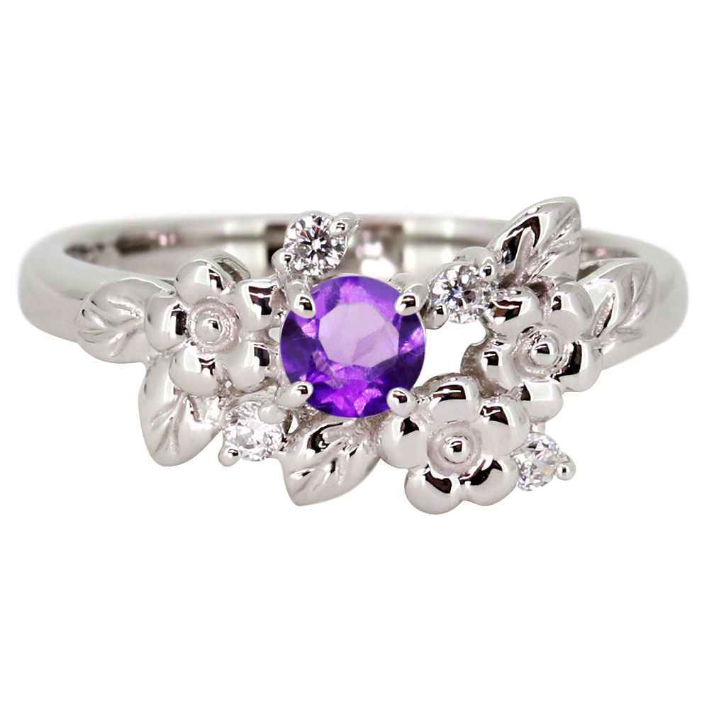 2月誕生石アメジストを使用したプラチナ製の、フラワー(花)モチーフのレディースリング(指輪)です。