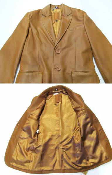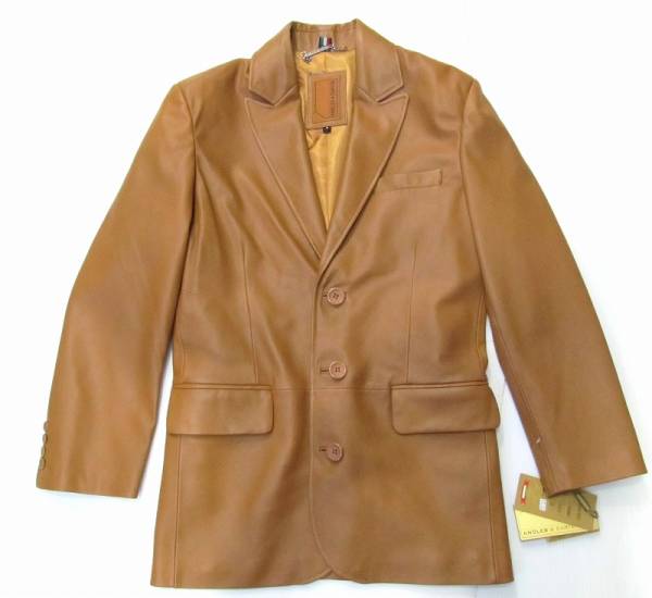 Y33)KNOLES&CARTERテーラードレザージャケットSベージュUS