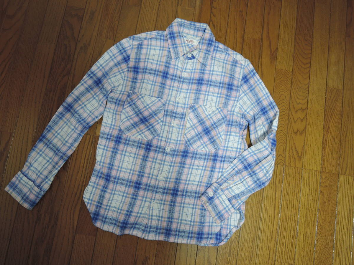 HRM ハリラン チェック ネルシャツ S 青ピンク白 ハリウッドランチマーケット HOLLYWOOD RANCH MARKET /