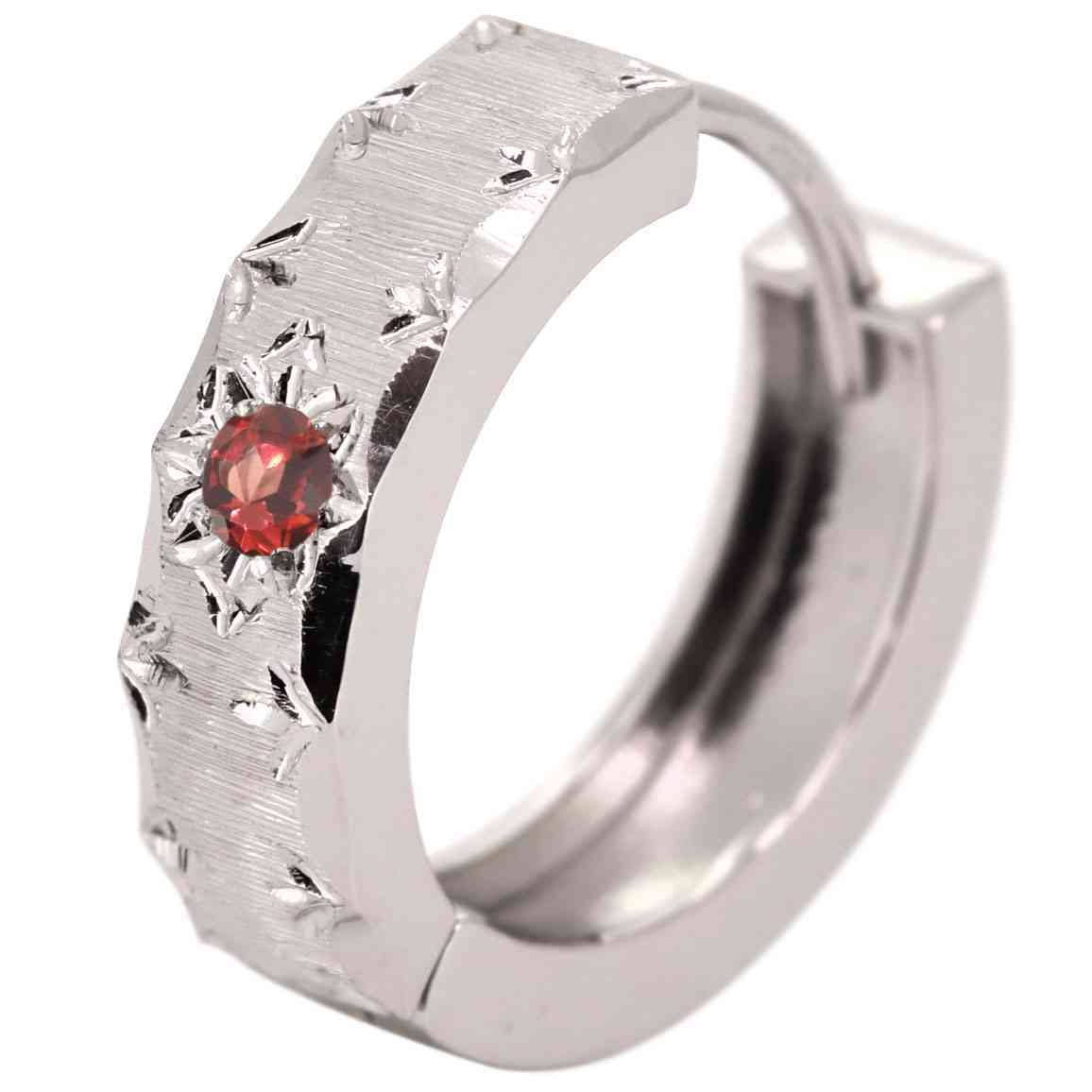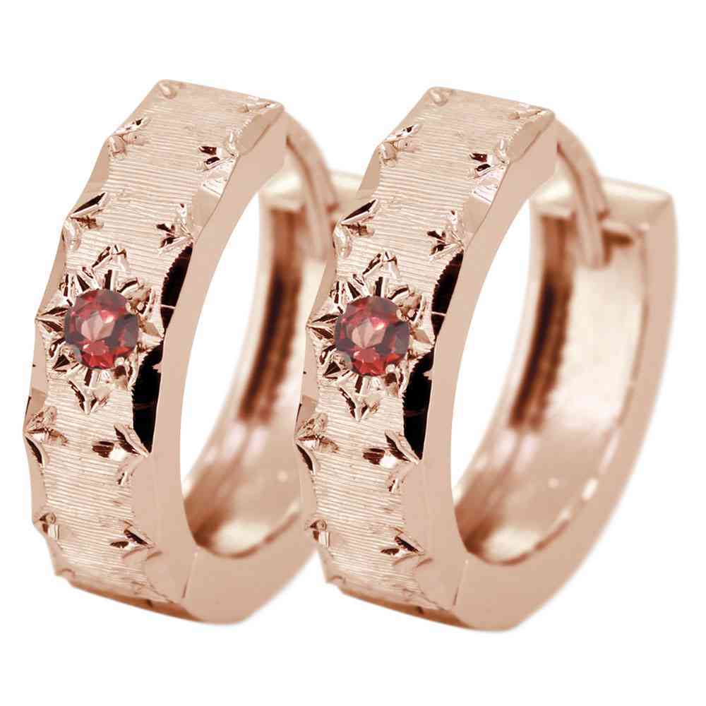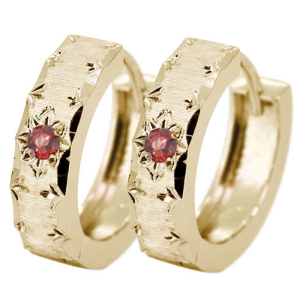 1月誕生石ガーネットを使用した10金製の、レディースフープピアスです。